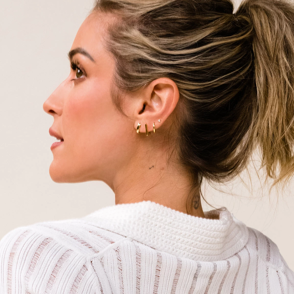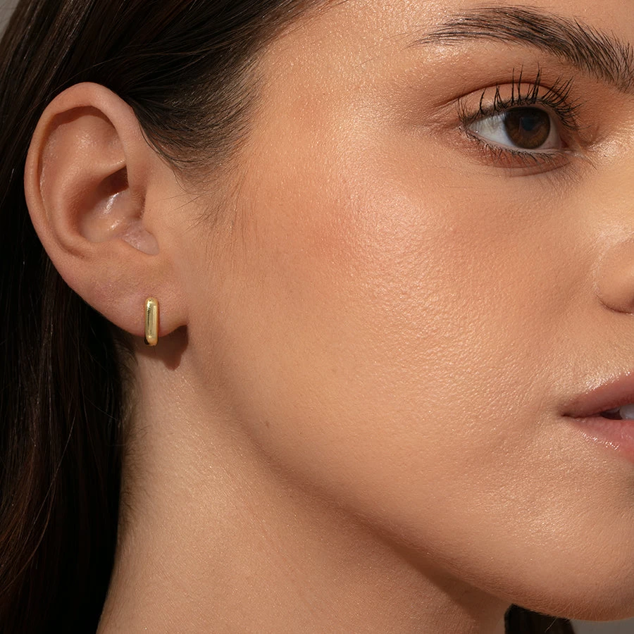 Give your everyday hoops a refresh with our Baby U Vermeil Huggie Earrings. These elevated U hoops are crafted with 18k gold over sterling silver. For a full look our stylists love, stack these unique hoop earrings with our Class Act Vermeil Huggies, Mini Everyday Vermeil Huggies, and Triangle Diamond Vermeil Stud Earrings.