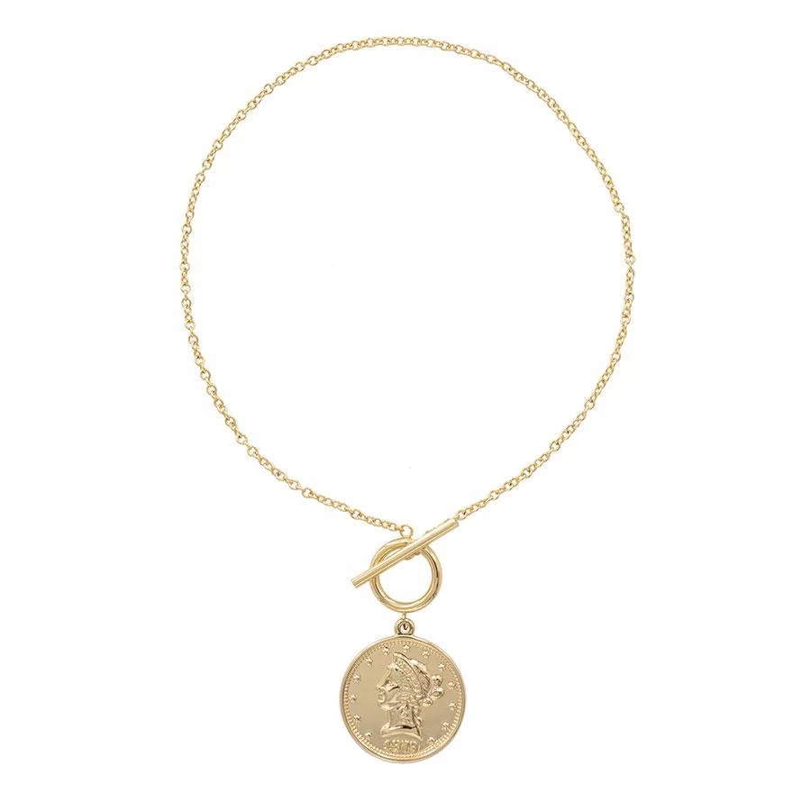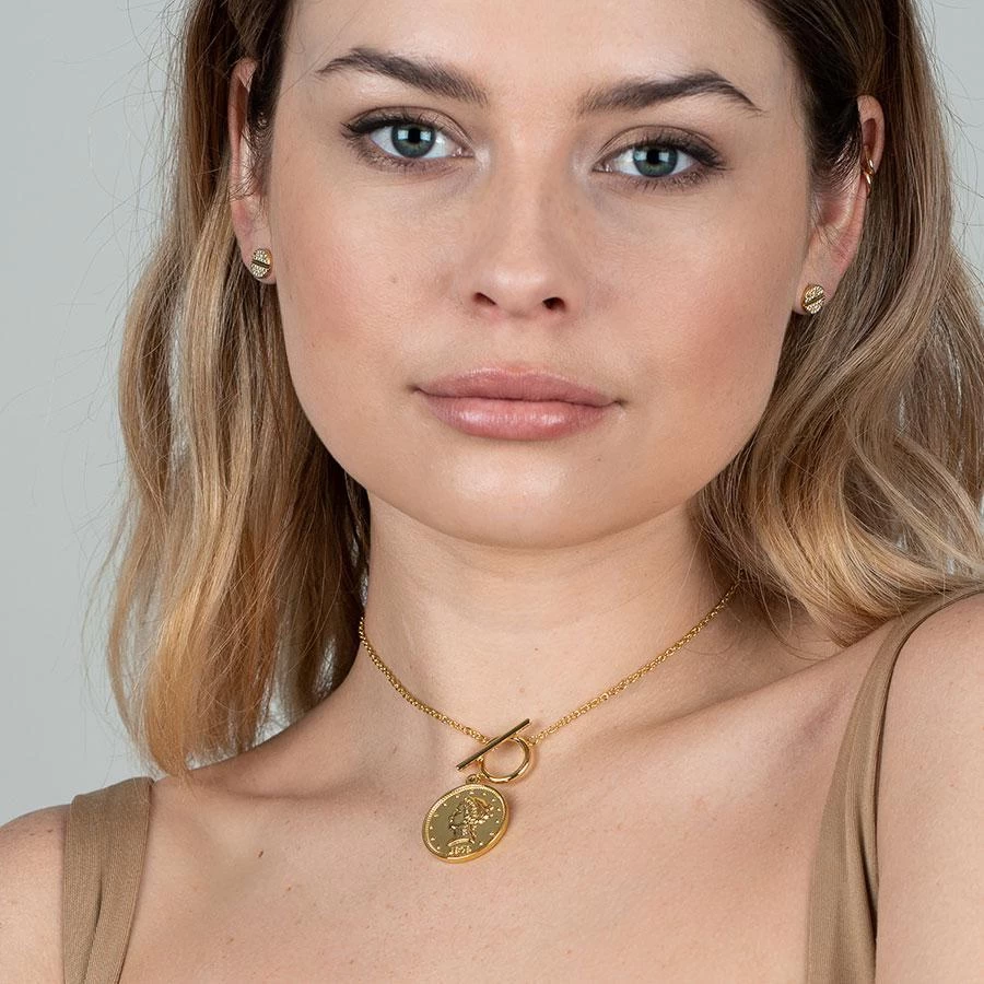 We love Lady Liberty for her strength and courage. Let her shine with your everyday looks to feel confident and inspired. For a more dainty look, see our BAHIA NECKLACE that also features a Lady Liberty coin.
