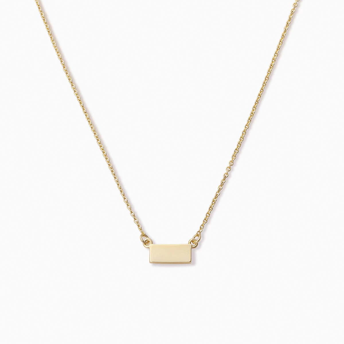 Give your tried-and-true gold bar necklace an upgrade with our unisex Bellissima Necklace. This pendant and chain necklace will quickly become one of your everyday jewelry pendants thanks to how easy it can be styled. Wear on its own for a simple statement or stack it with our Little Lady Necklace for your very own necklace set.