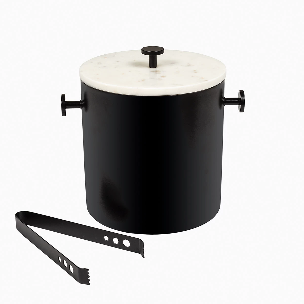 Our Black and Marble Ice Bucket and tongs are a winner at cocktail hour. With our black and marble detailing, this keeps ice at-the-ready for adult beverages.