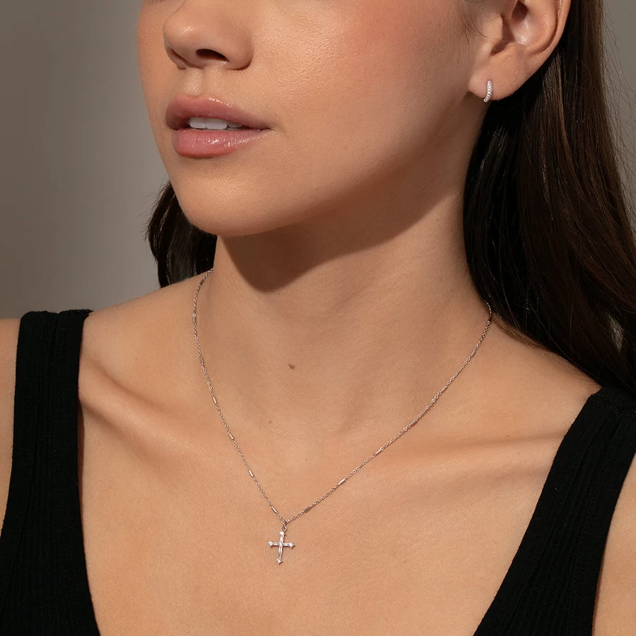With a mix of bold and dainty, this cross necklace really does it all. Our Bold Cross Pendant Necklace is crafted with a bar-detailed dainty chain and a bold cross pendant that we know you’ll be obsessed with. For a full look, pair this Sterling Silver cross necklace with our Bold Cross Huggie Earrings.