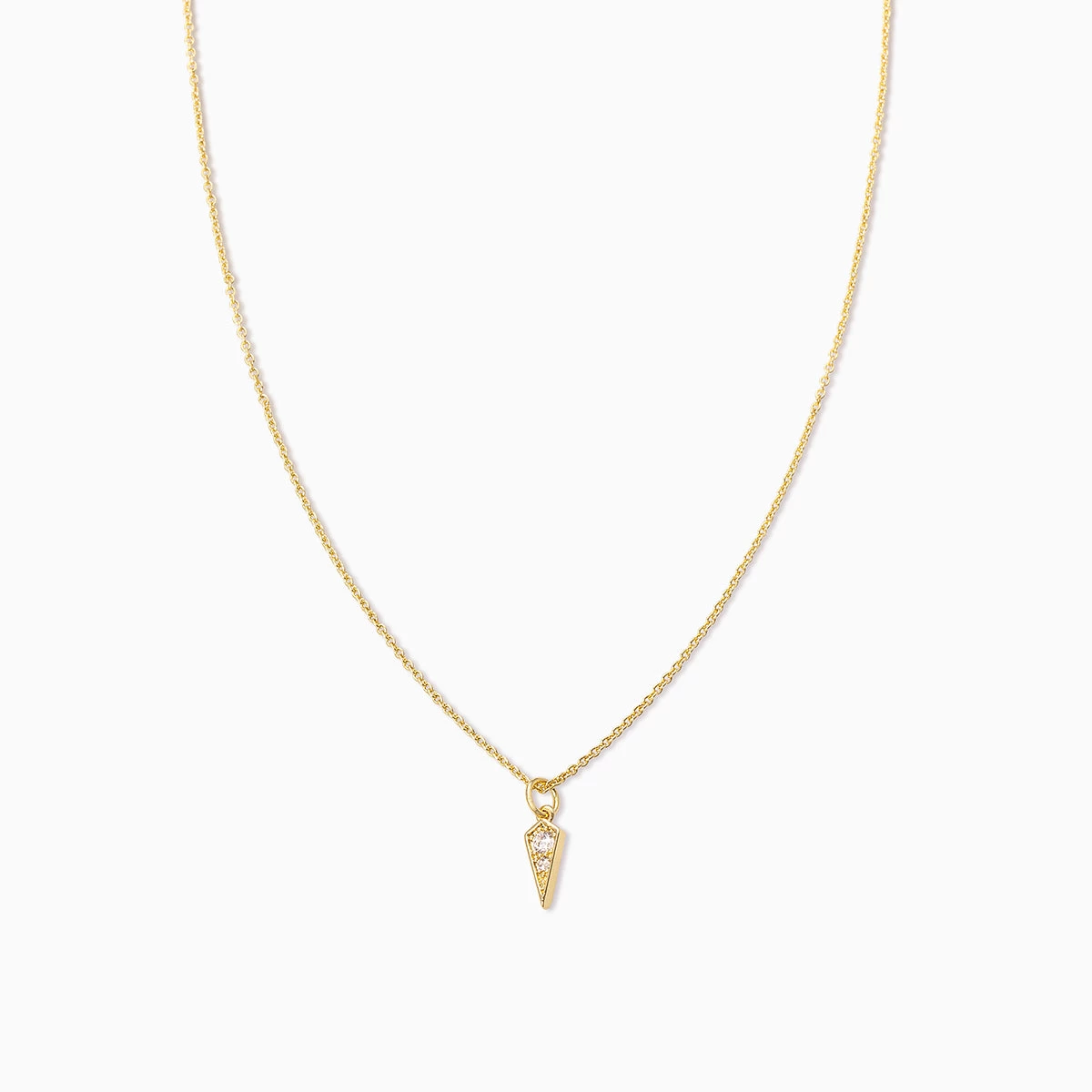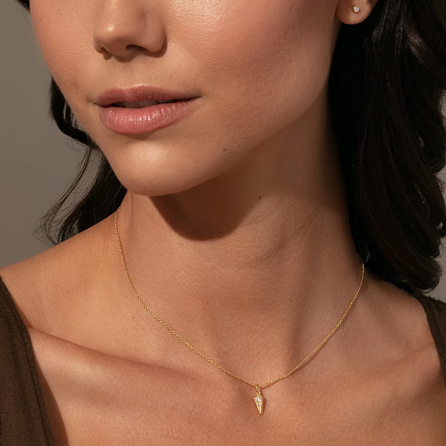 Our Breaking Point Pendant Necklace is the perfect balance of dainty and bold. Featuring a dainty chain necklace and a bold, shimmery pendant, this necklace is sure to become an everyday staple. To recreate Kristin’s stack, pair this pendant and chain necklace with our Linked Up Necklace and Rebellion Lariat Necklace.