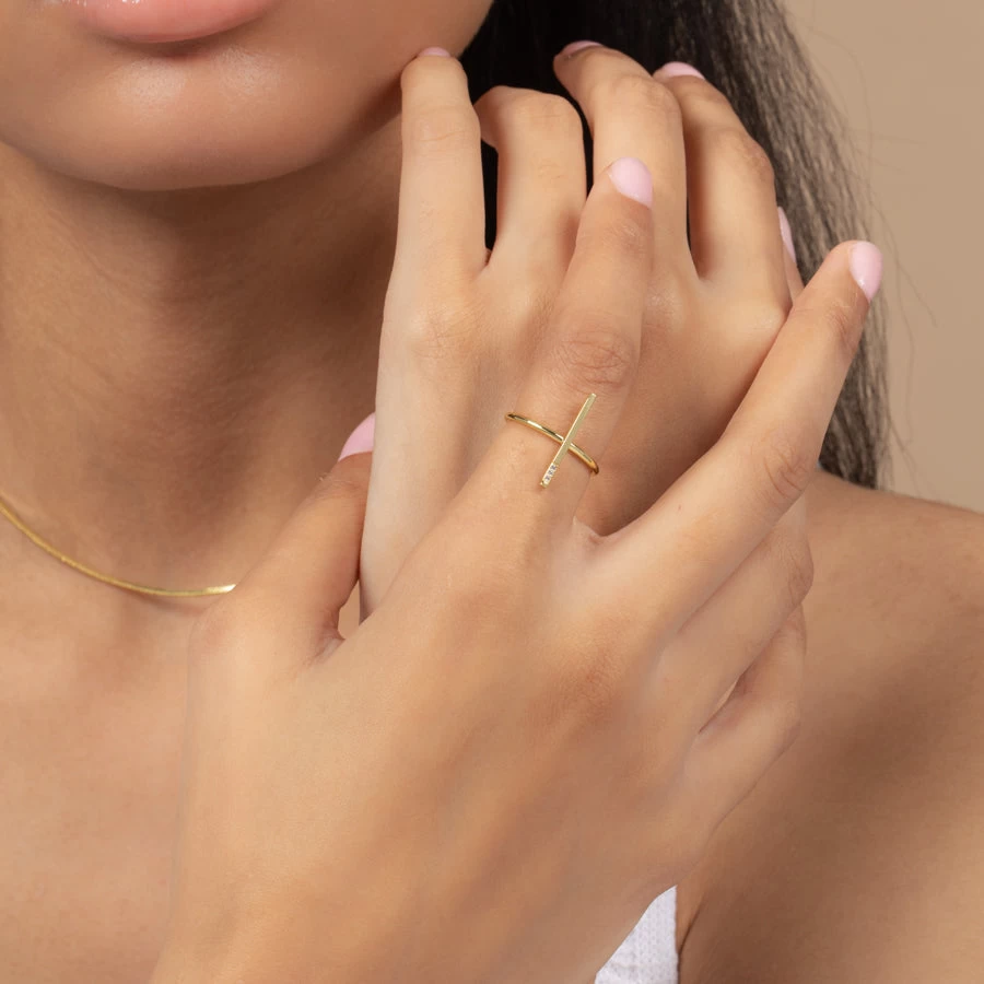 They say to look at the bright side, and we couldn’t agree more. Our Bright Side Ring has a minimalist bar across the top for a touch of edge—with 3 cubic zirconia sparkling on one side. Created with 14k gold plating, it matches the Trinity Necklace for a complete look.