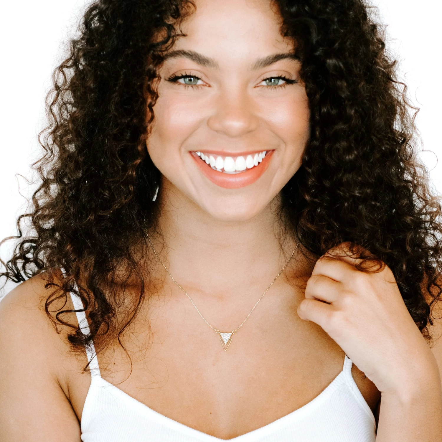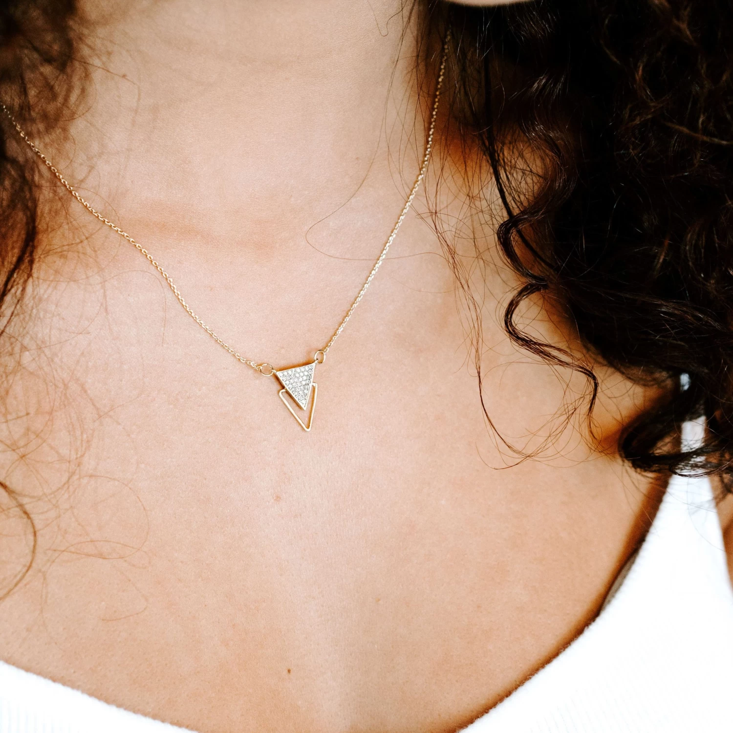 When someone asks “what are pendant necklaces?” show them our Brooklyn Necklace. The illusion of two triangles will make them do a double take and then shower you with compliments. Let this chain and pendant necklace be your new go-to.