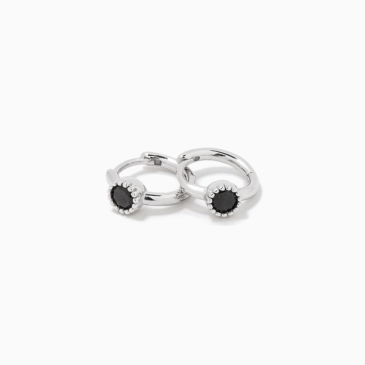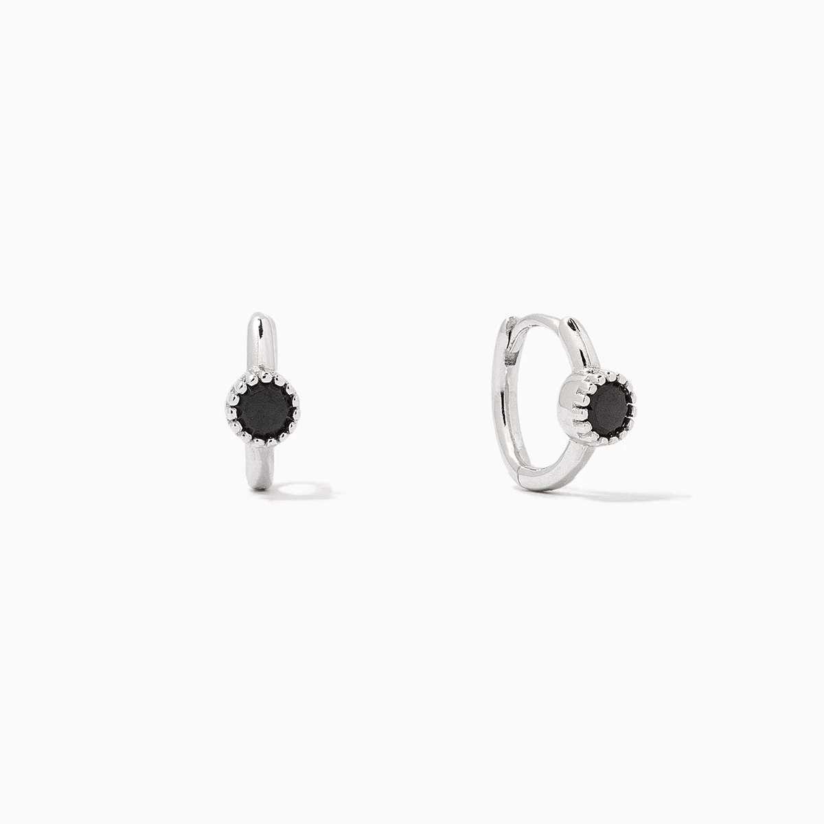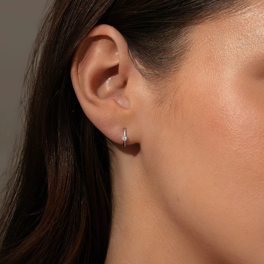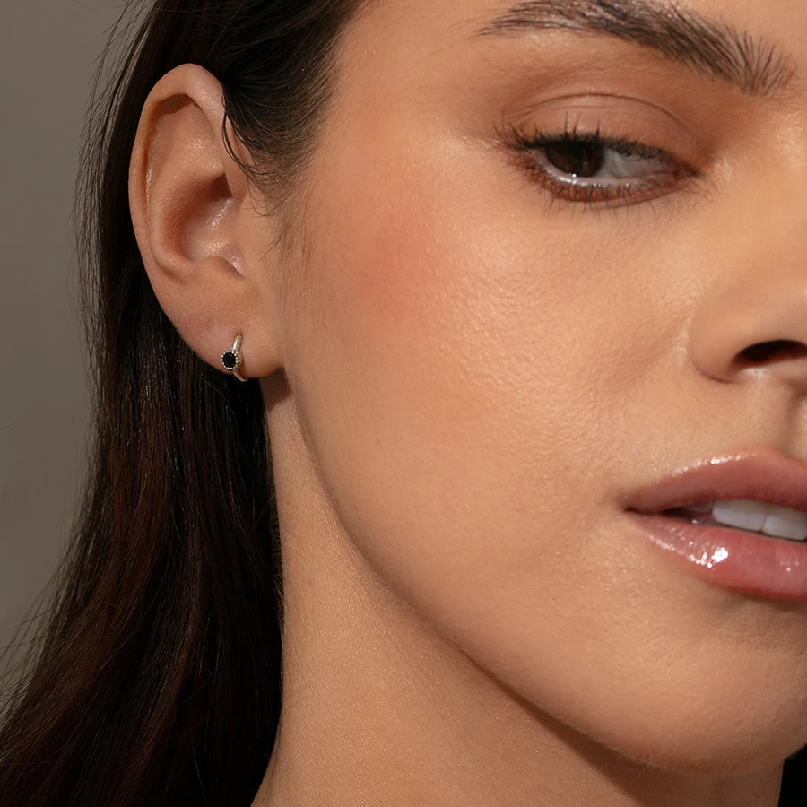 The Center Stage Huggie Earrings deserve a spotlight and a starring role. Crafted with a mini hoop and your choice or a black gem or a cubic zirconia stone, these Sterling Silver huggie earrings will effortlessly stack with all of your other favorites. To recreate Kristin’s ear stack, pair these huggies with our Small Girl Boss Earrings and Mini Girl Boss 2.0 Earrings.