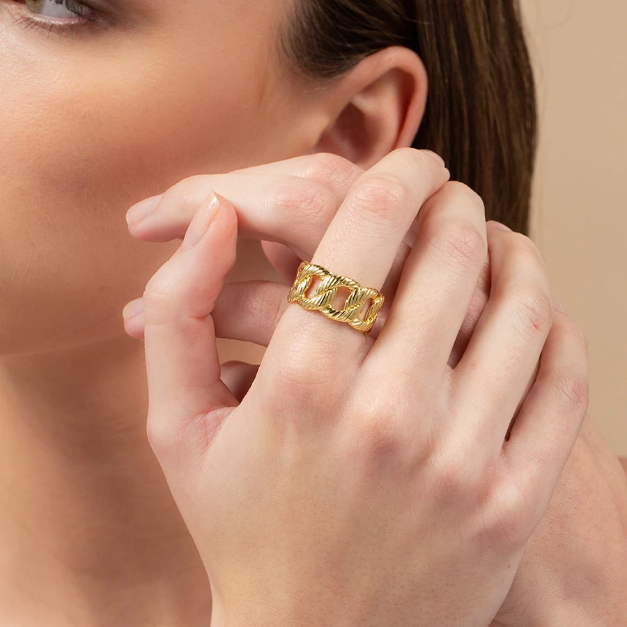 If you didn’t know by now, we have a thing for chain jewelry and the Chunky Chain Ring is no exception. This textured chain is the perfect everyday gold ring you need in your jewelry collection.