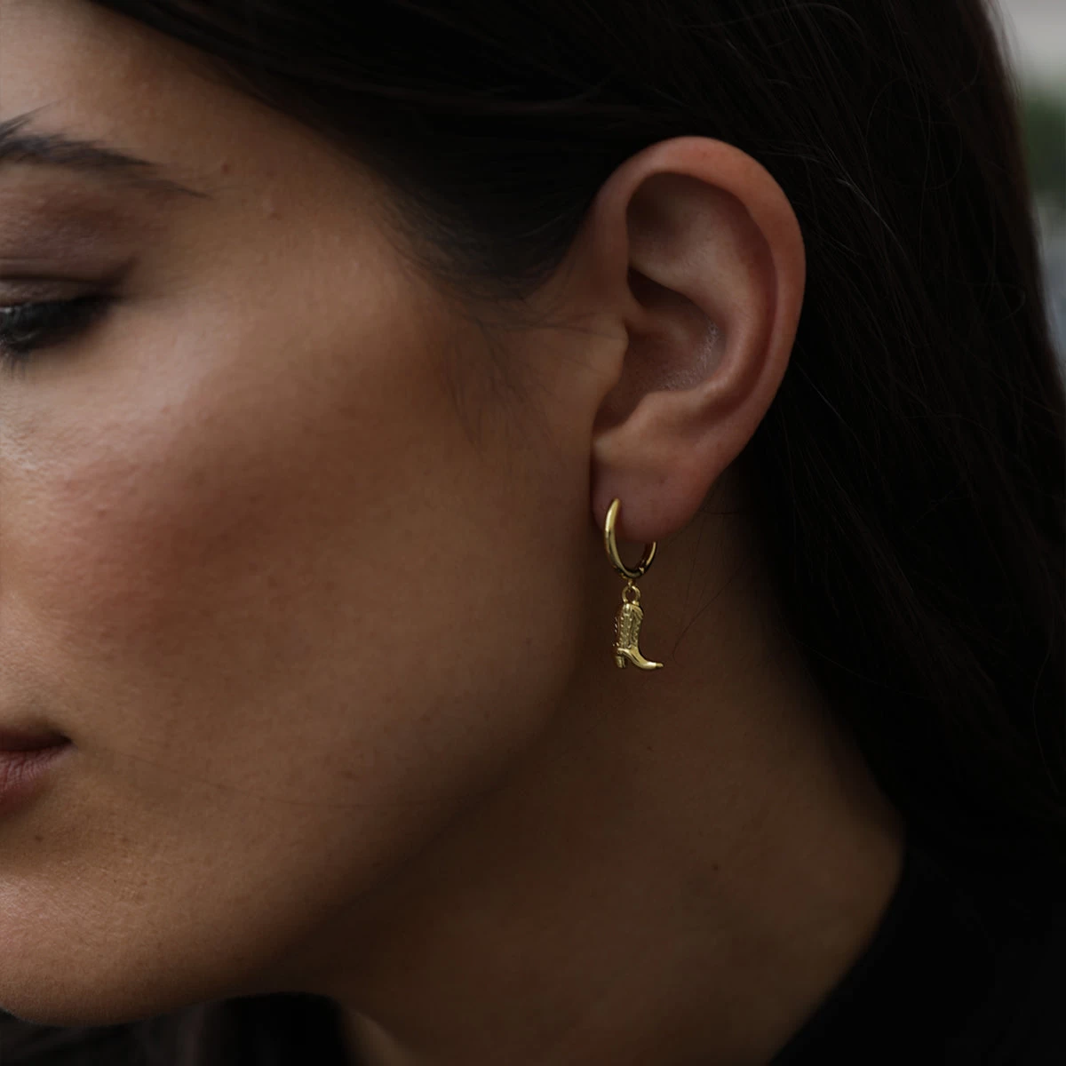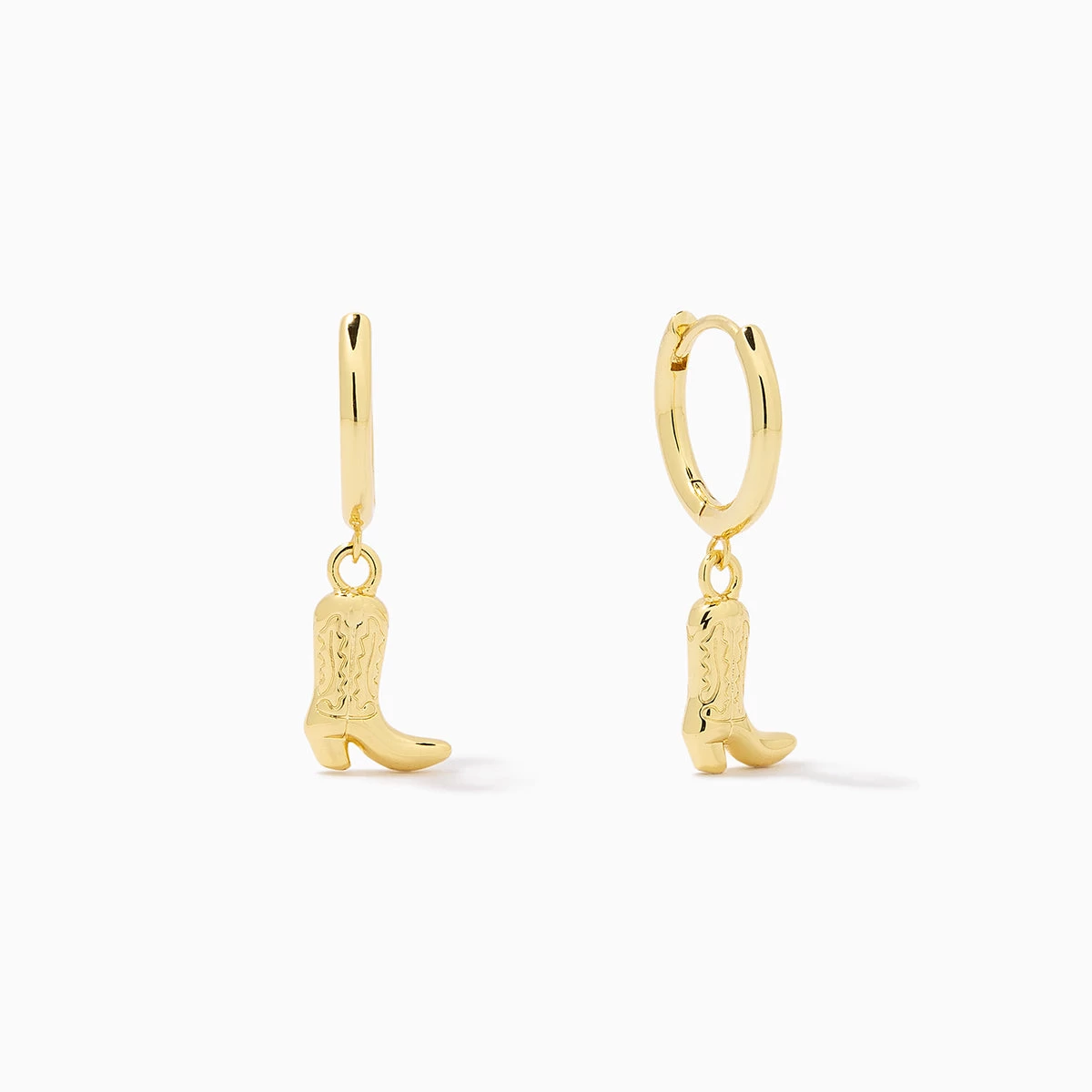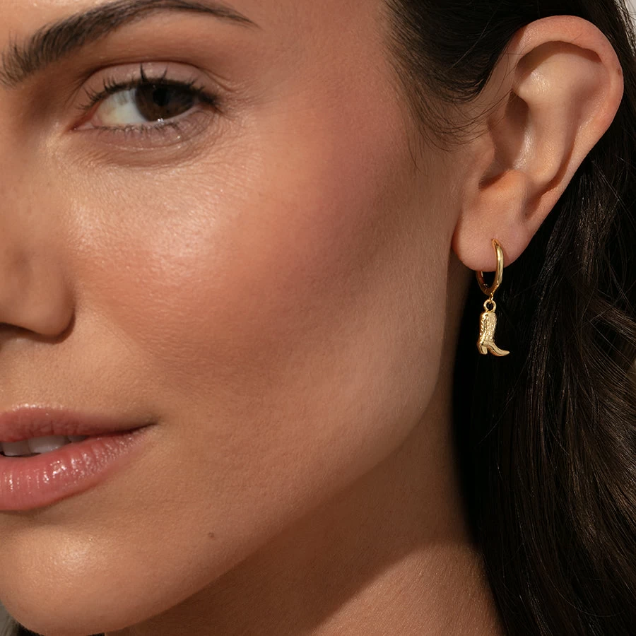 Add a little twang to your look with our Cowboy Boot Huggies. These gold huggie hoop earrings feature a cowboy boot dangle that’s perfect for any aesthetic — coastal cowgirl or just normal cowgirl. For more cowboy boot styles, shop our full collection.