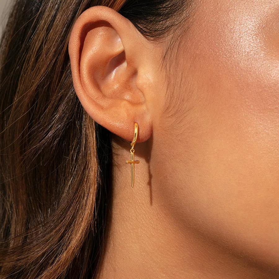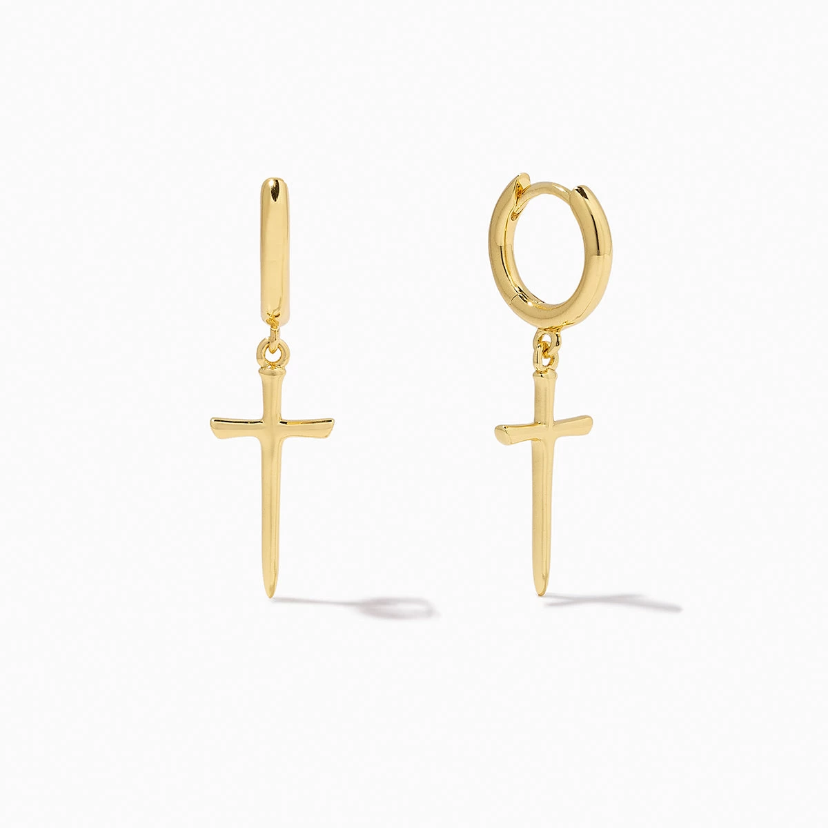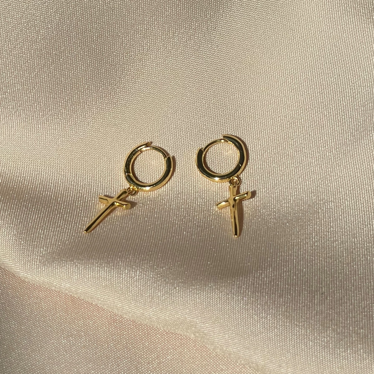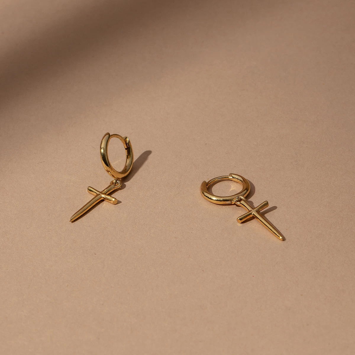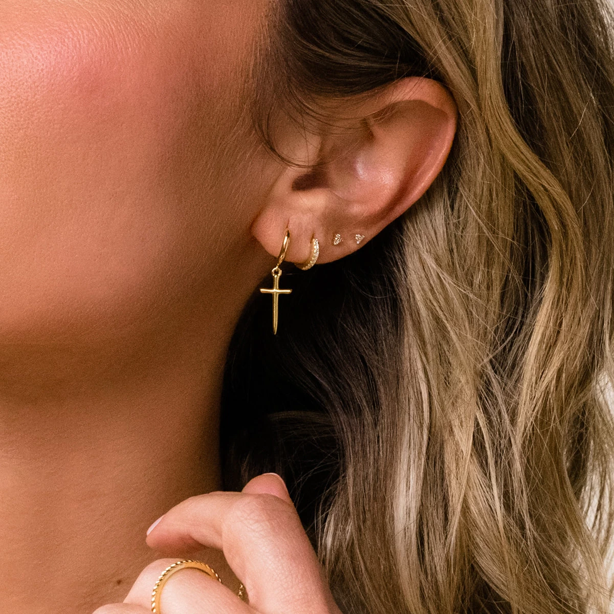 A simple cross hangs from a classic gold hoop to create our Cross Vermeil Huggies. Wear with our Side Cross Vermeil Necklace for an easy, everyday look that’s fully crafted from 18k solid gold over sterling silver.