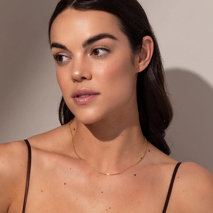 We’re all about dainty pieces, and the Delicate Necklace has quickly become one of our favorites. Featuring a thin chain connected by gold bars, this is bound to be your favorite too.