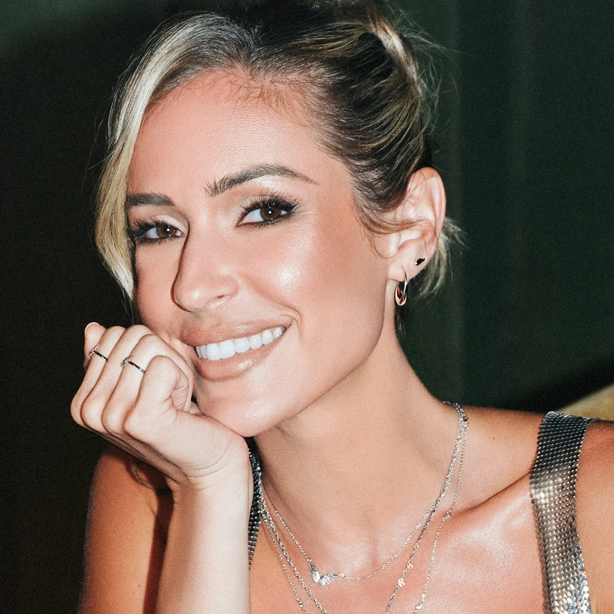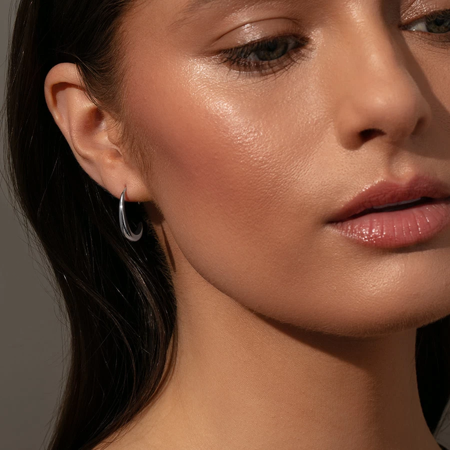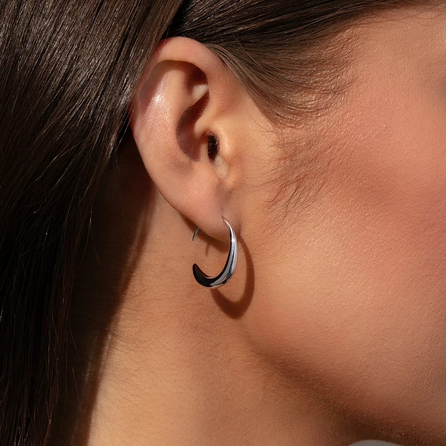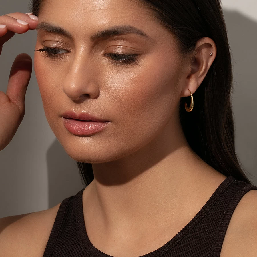 Add some organic shapes to your ear stack with our silver or gold Dewdrop Hoop Earrings. These thread hoop earrings are the perfect everyday hoop you can pair with everything in your jewelry collection. To recreate Kristin’s ear stack, pair these hoops with our Fighter Stud Earrings.