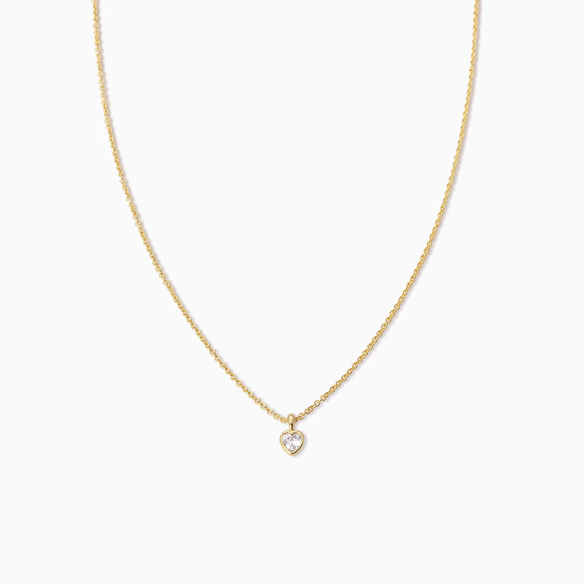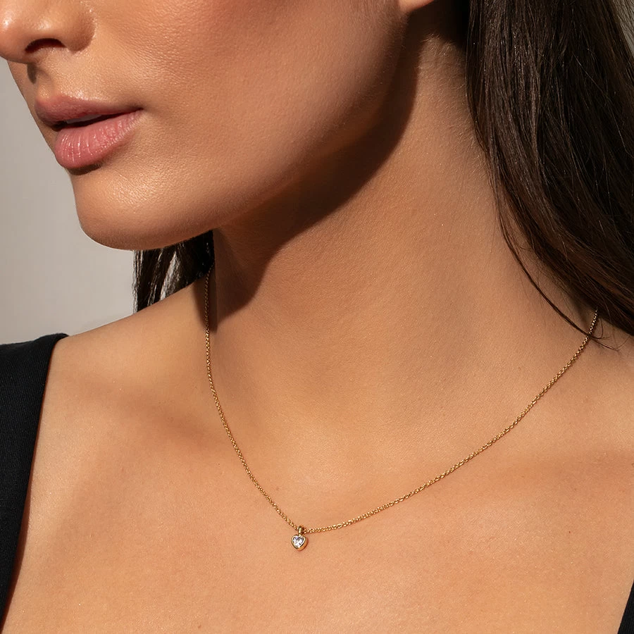 Our Diamond Heart Necklace will take your stack to the next level. Featuring a dainty gold chain and a heart pendant, this adds the perfect touch of love to your look.Â