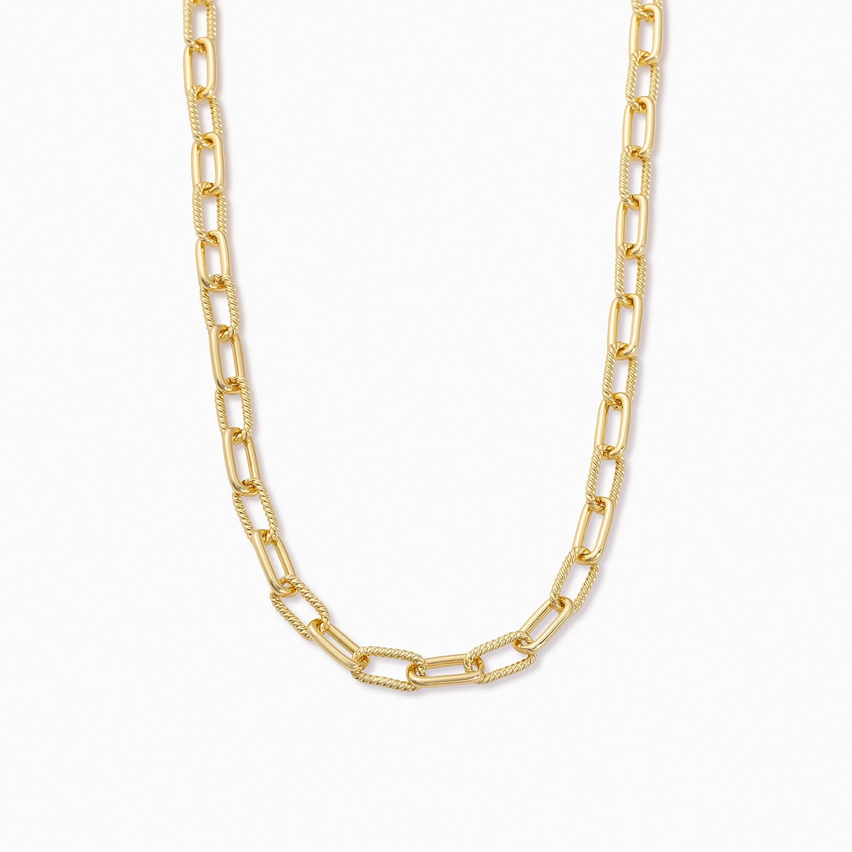 With a mixture of smooth and textured links, our unisex Double Linked Chain Necklace adds even more to your chain game. Coming in both gold and silver, this chain necklace is a staple your collection deserves.Â