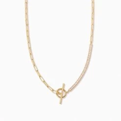 What makes this chain necklace elite? Oh you know, only the fact that we blended a paperclip chain and rectangle-shaped stones together. You can shop the Elite Chain Necklace now and thank us later.