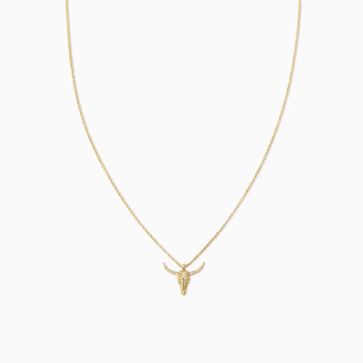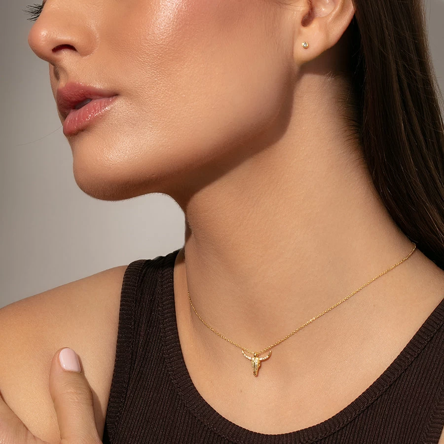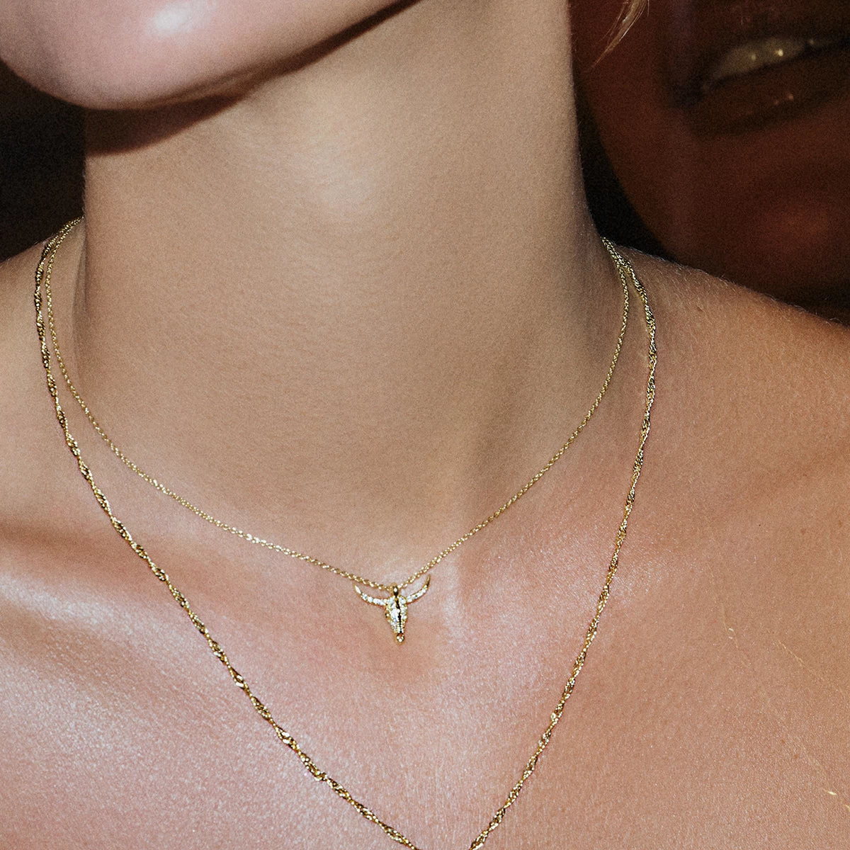 Our best-selling Fighter Necklace now has some extra shine! Crafted with a longhorn pendant, a chain necklace, and pavé stones, this necklace is an essential everyone needs. For a full look, pair the Fighter Necklace 2.0 necklace with our Fighter Stud Earrings.