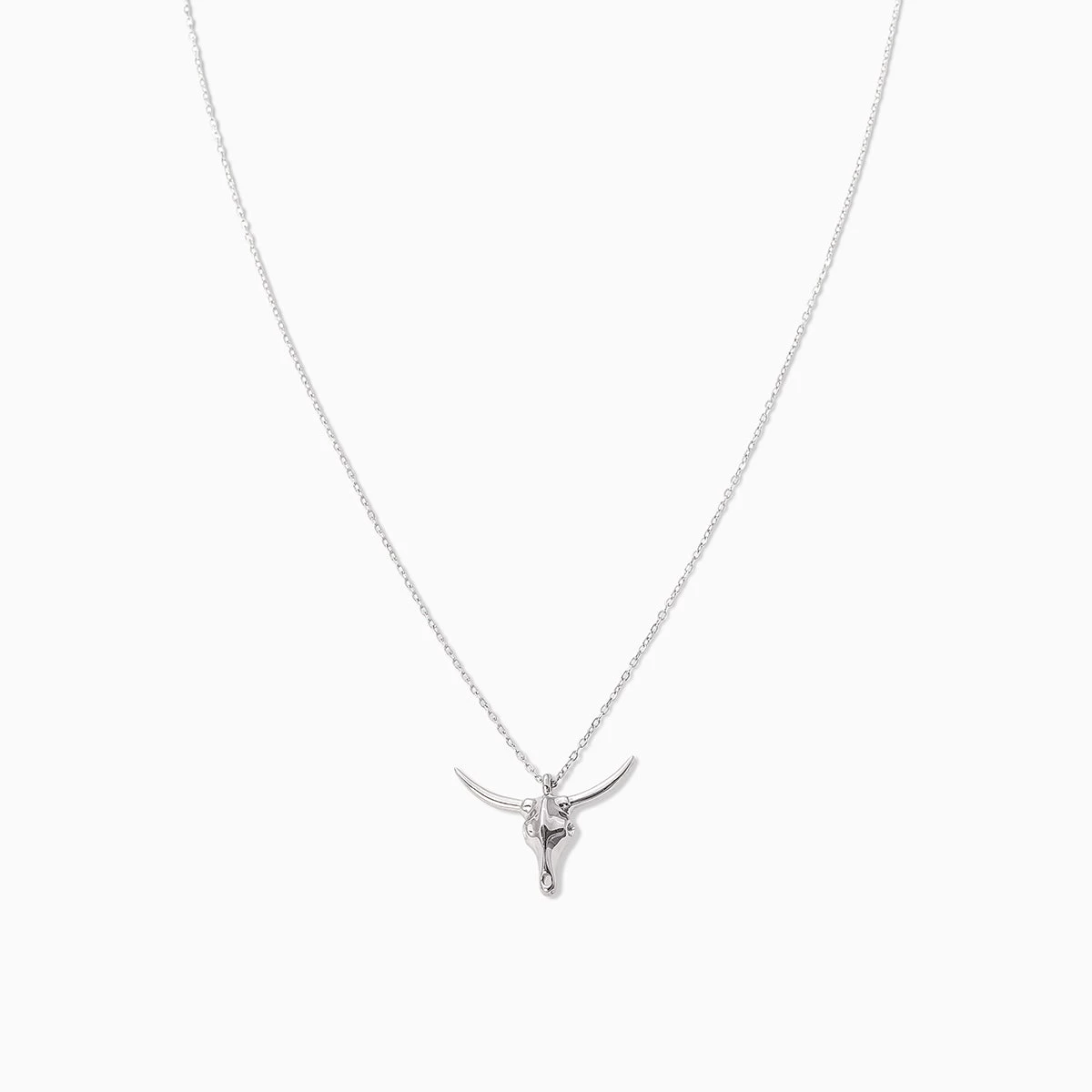 Our Fighter Necklace is a simple chain necklace with a longhorn pendant. This standout chain with pendant necklace is the perfect layering piece for when you need a little touch of country. Plus, it even comes in Sterling Silver!