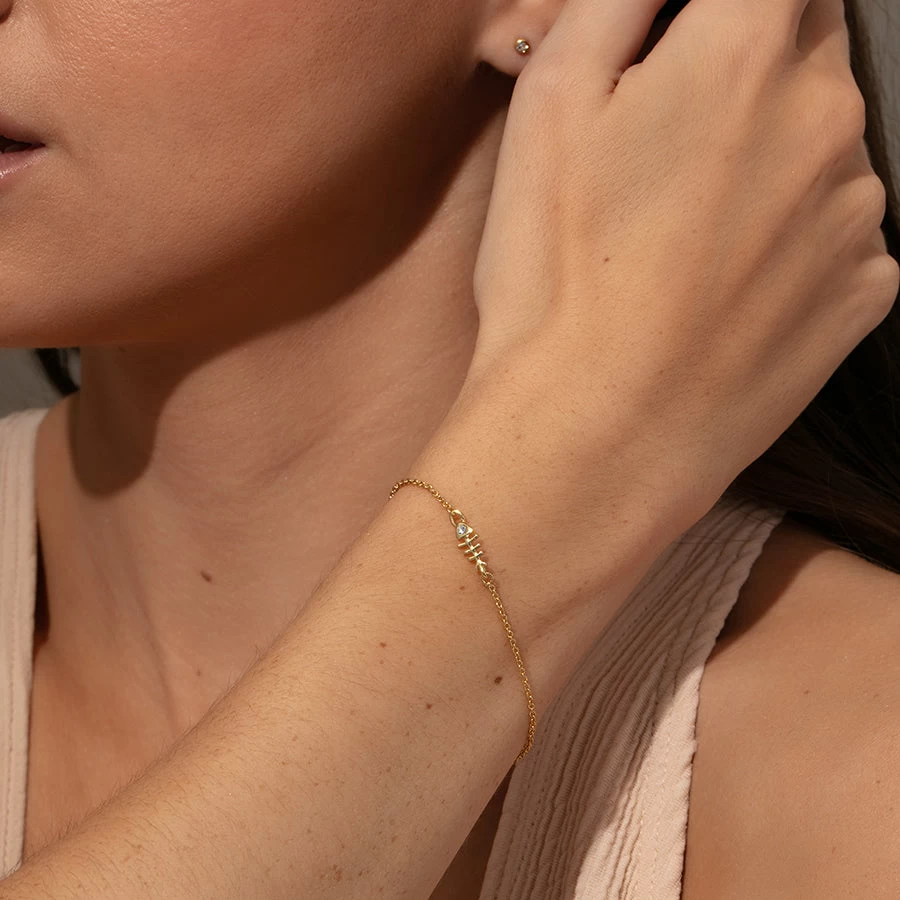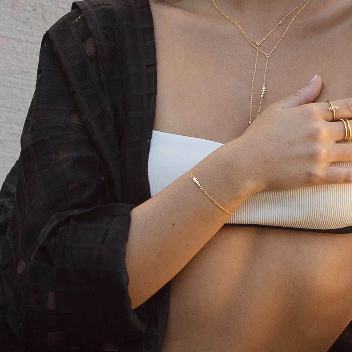 Want a dainty chain bracelet with an unexpected twist? You need our Fish Bone Chain Bracelet. This dainty chain bracelet features fish bone detailing that will make it stand out from everything else in your collection. Layer with your favorite gold bracelets for a full stack, or get our matching fish bone jewelry when you shop our travel essentials.