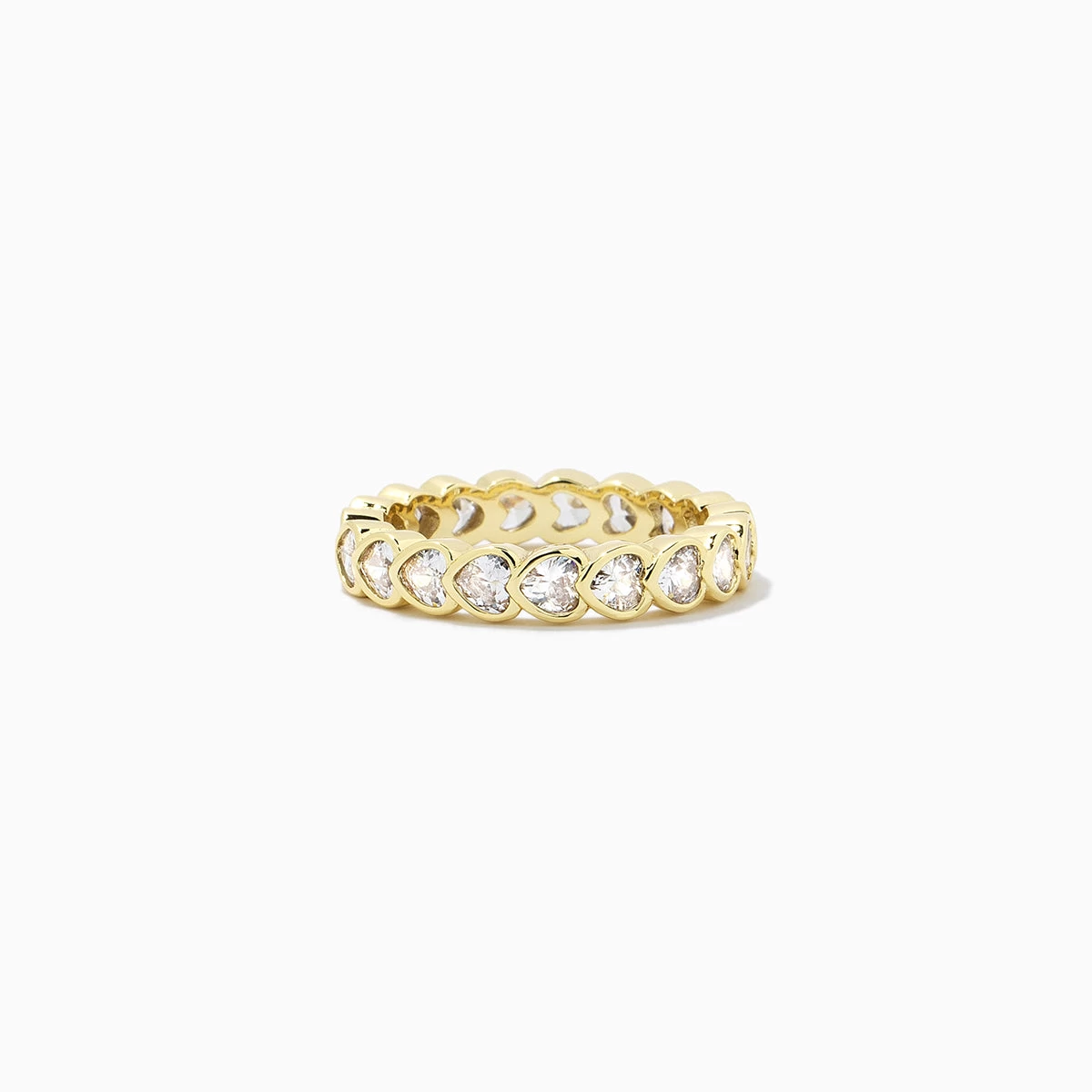 The name of our Forever In Love Ring speaks for itself. Crafted with heart shaped stones and a gold band, this gold heart ring is a stacking essential you’ll be in love with until the end of time.