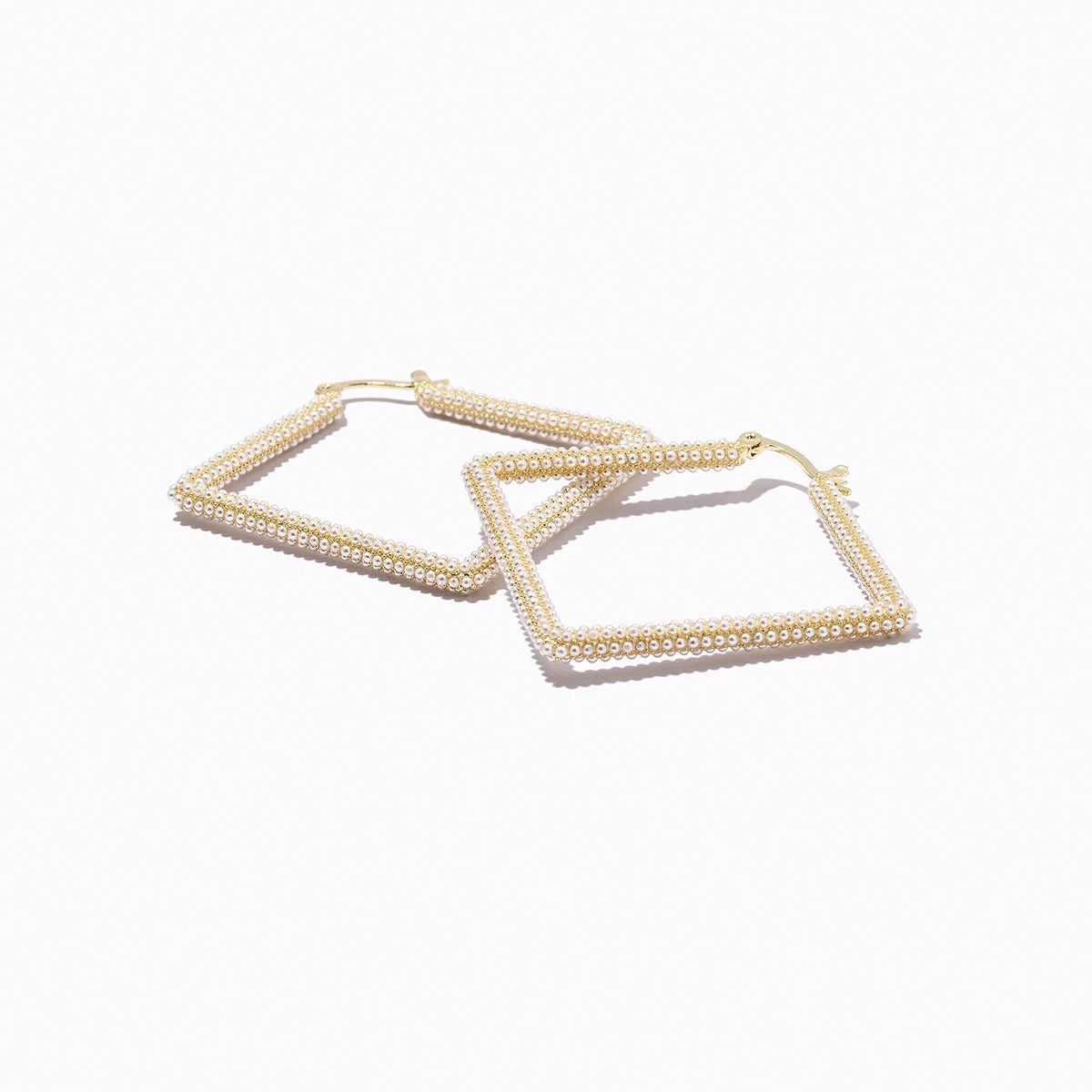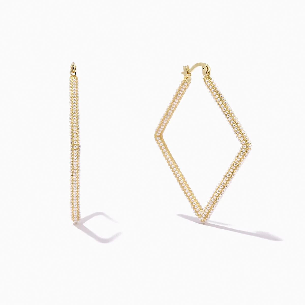 Our best-selling style has a new look. Girl Boss Reimagined is our favorite geometric hoops covered in mini pearls. Talk about timeless. Stack these pearl and gold earrings with your other favorite gold earrings or wear alone as a statement maker. Check out Girl Boss 2.0 for a sparkling version of this wardrobe staple.