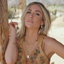 We just can’t get enough of these unique heart earrings with a gold gemstone hoop. Our Honeymoon Earrings are the perfect gold statement earrings that can be easily worn on their own or stacked with small simple earrings.