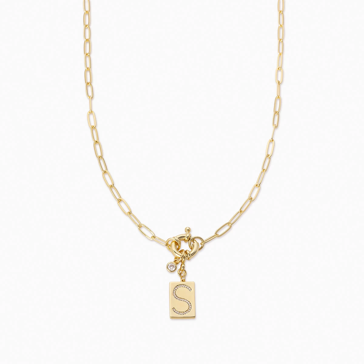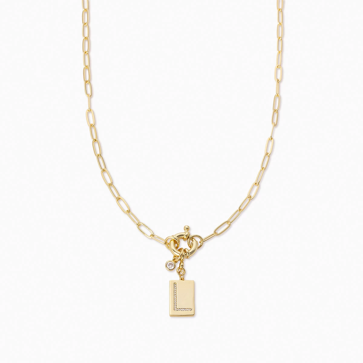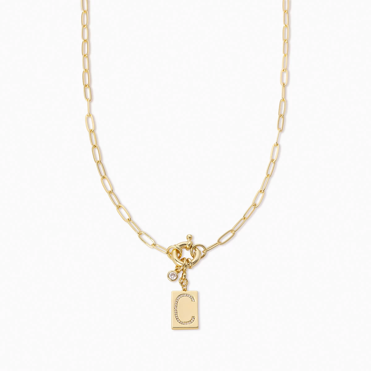 Chains, initials, and shine all in one necklace. It truly doesn’t get much better than our Initial Chain Necklace. This chain and pendant necklace brings together an initial jewelry pendant and a small stone, creating the ultimate pendant necklace.