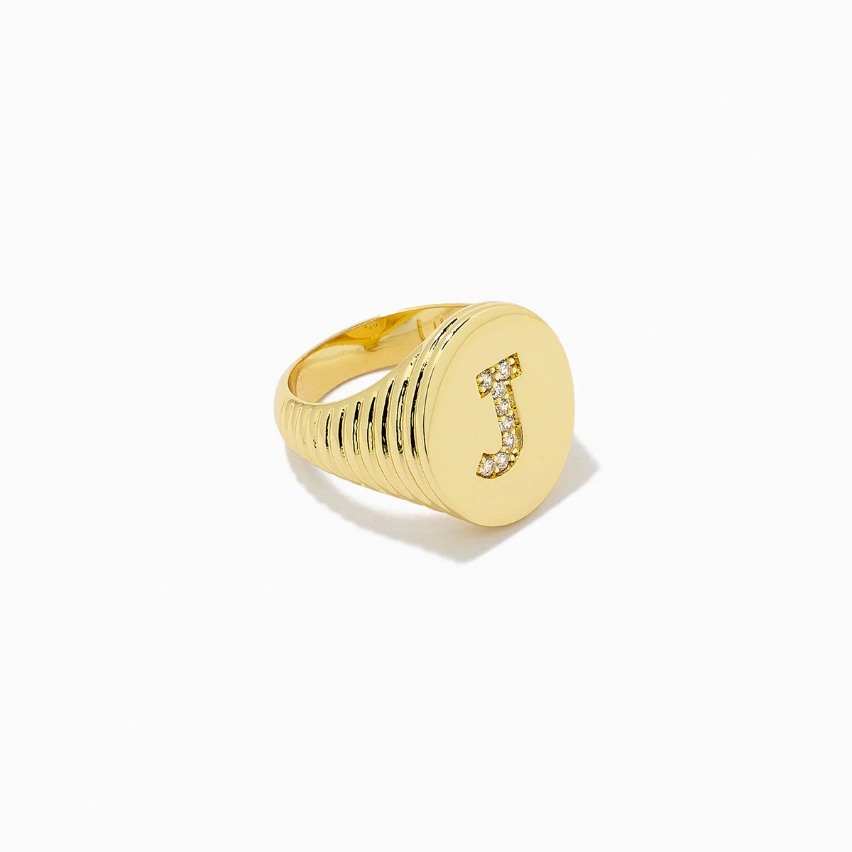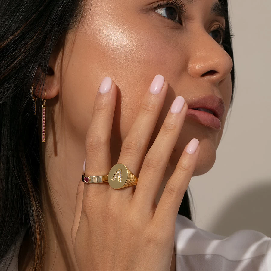 The perfect gold initial ring that is sure to have everyone asking “Where did you get that?” For a fully personalized look, shop our Initial Jewelry.