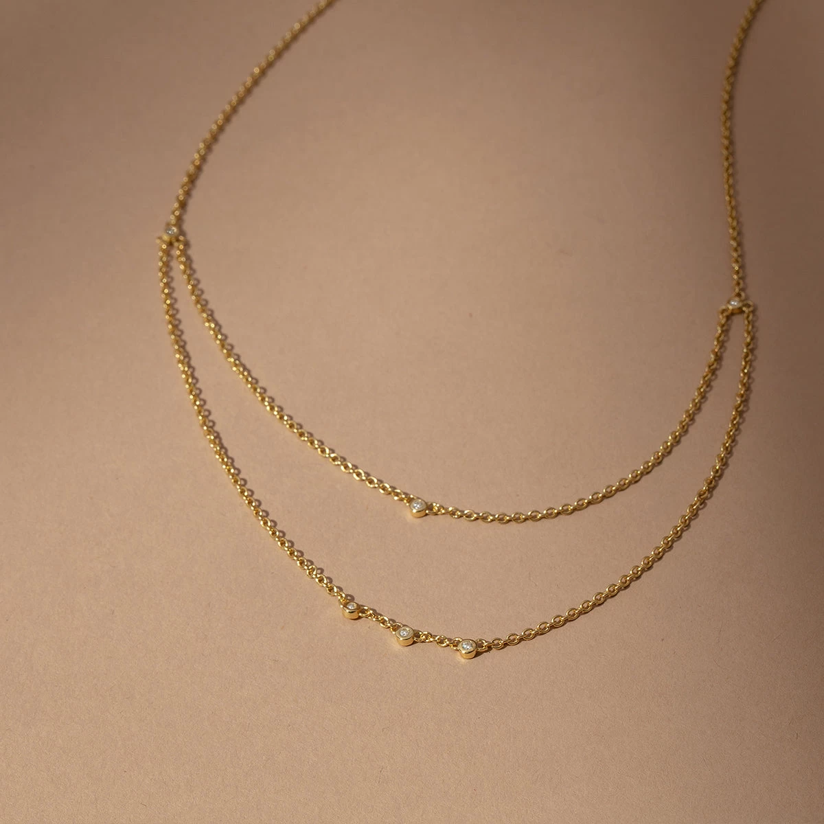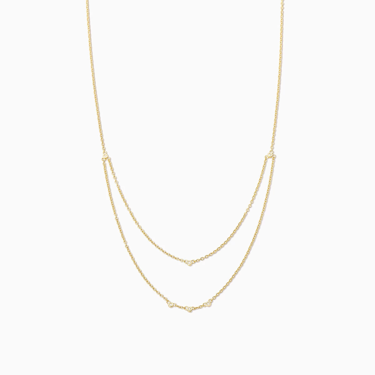 Add some gold layers to your look with our Layered Chain Vermeil Necklace. Crafted from 18k gold over sterling silver, this pre-layered necklace is an effortless, yet still elevated piece every jewelry collection needs. Did we mention it also has real, slightly included round-cut diamonds? Now you really need this gold necklace.