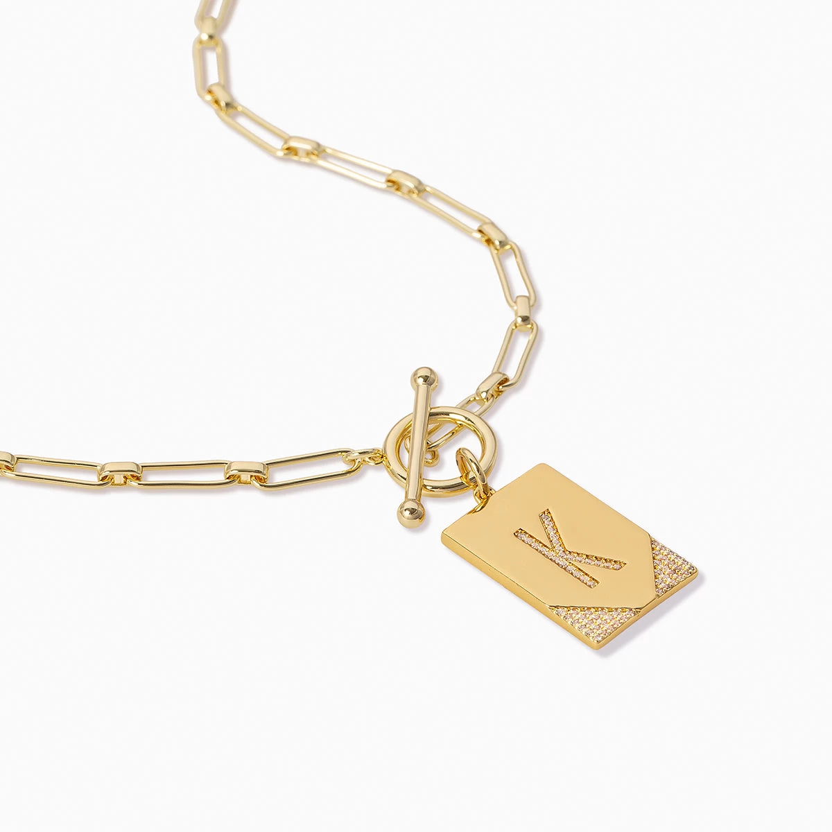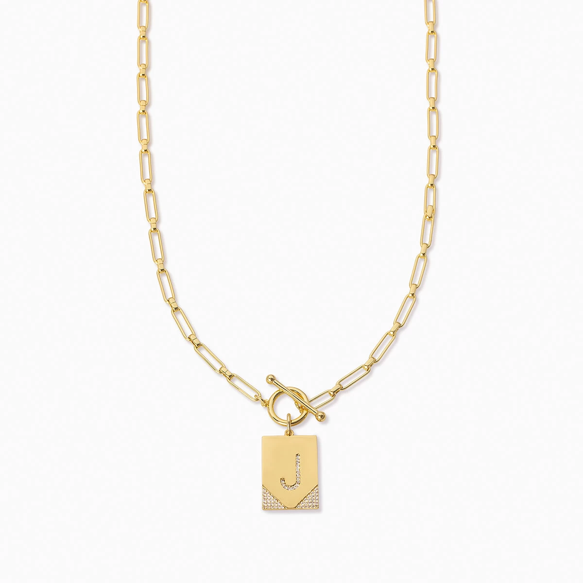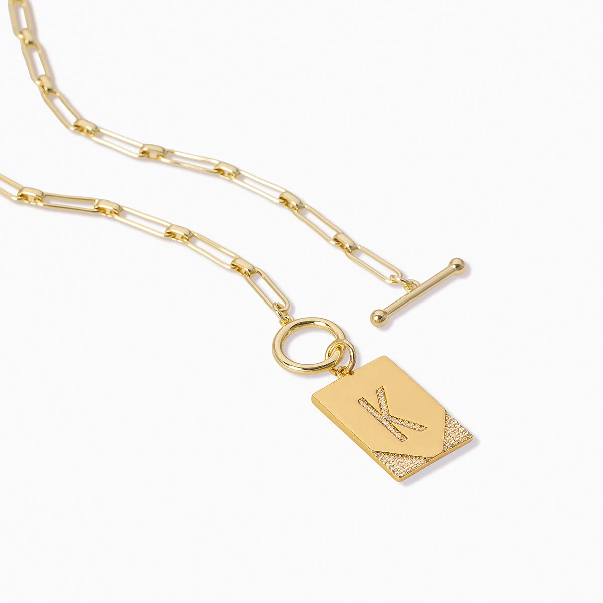 No initial necklace can make a statement quite like our Leave Your Mark Chain Necklace. Featuring a paperclip chain, toggle, and rectangle pendant, no one will forget you in this necklace.