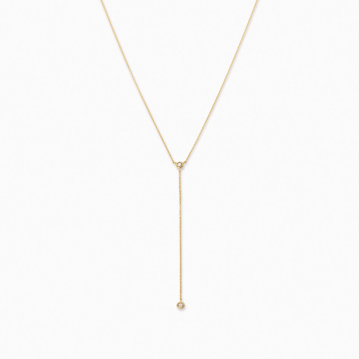 The dainty lariat of your dreams features two small circular stones and is called Little Things Lariat Necklace. This gold necklace is perfect for everyday wear on its own or layered with some of your favorites. Our stylists love layering this long gold necklace with our Level Up Necklace and Touch of Pink Necklace.