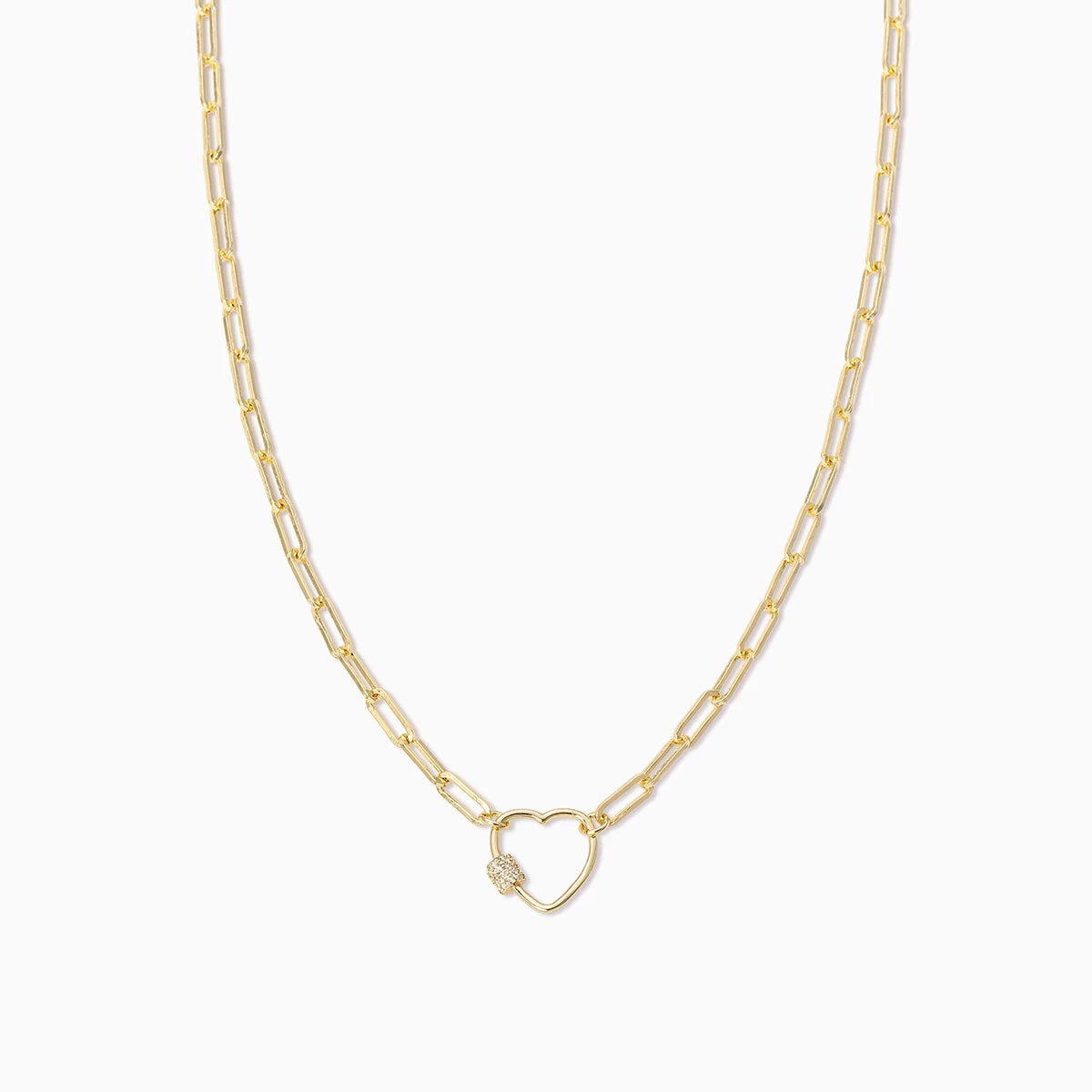 Keep your love on lock with this stunning paperclip chain and pendant necklace. Coming in gold and silver, our Locked Heart Necklace is the new staple you didn’t know you needed, until now. To recreate our go-to look, pair this chain necklace with our Radiating Heart Necklace.
