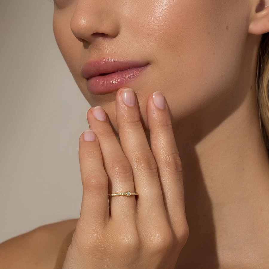 Our Middle Ground Ring includes small stones on each side with one large circular stone in the center, making it the perfect for stacking. This gold ring brings the perfect amount of shine to your ring stack, especially when you pair it with your favorite Uncommon James rings.