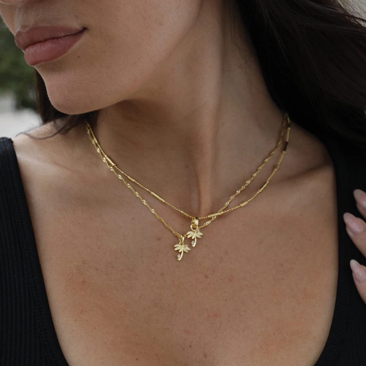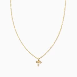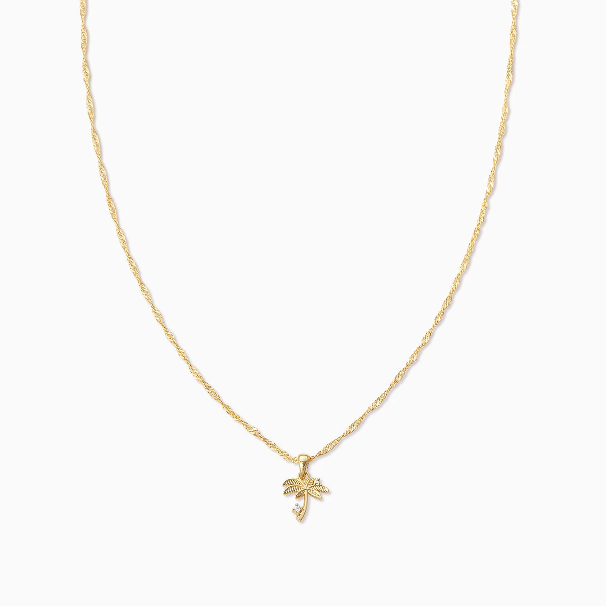 Our Palm Tree Pendant Necklace will make sure you always have a little piece of the beach with you. Crafted from a gold chain, a palm tree pendant, and two shimmering stones, this chain and pendant necklace is a must-have. Want more palm tree styles? Be sure to check out the full collection.