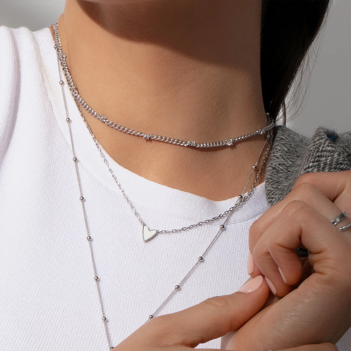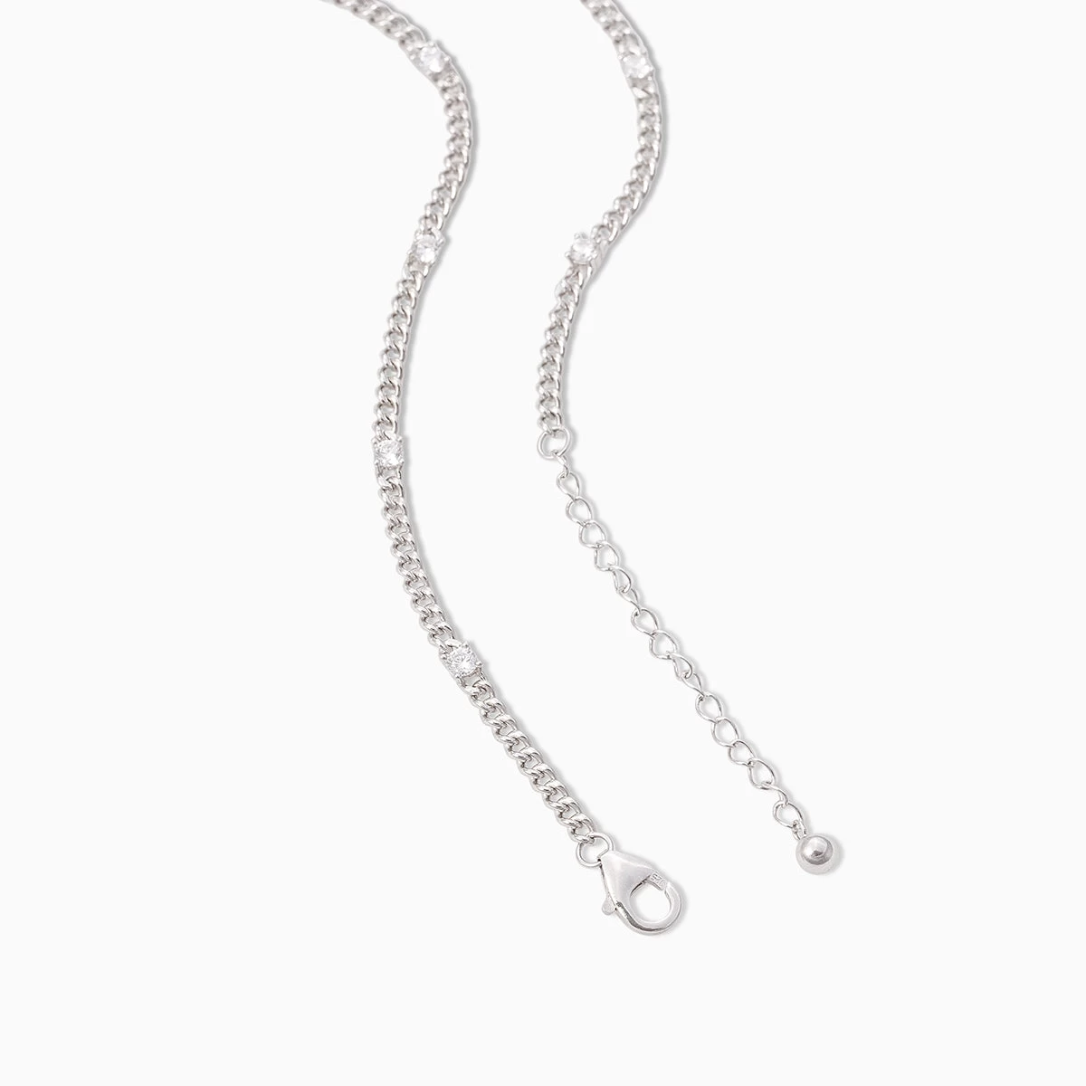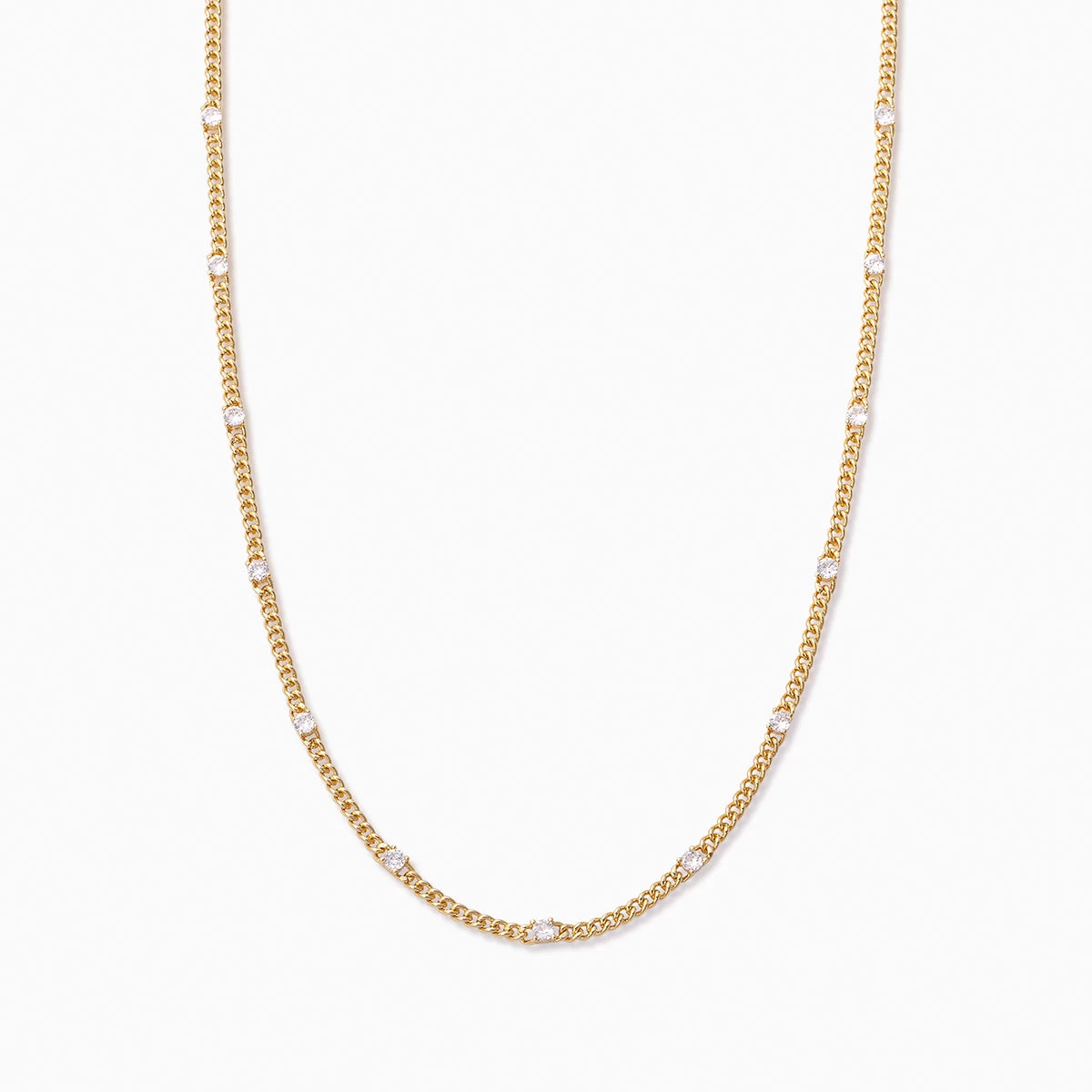 Our Pattern Necklace is here to step up your chain game with some shine. Featuring a Sterling Silver or gold curb chain and bold stones, this chain necklace is sure to put all eyes on you. For a look our stylists love, pair this necklace with a bold heart necklace.