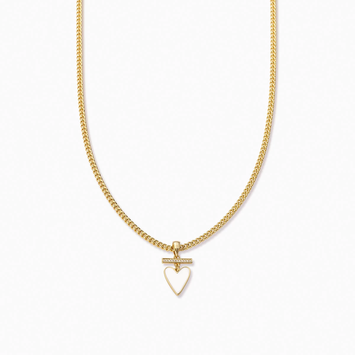 The white enamel heart style everyone already loves is now part of a new necklace! Our Pure Heart Necklace not only features the white heart pendant, but also a gold bar — all on an everyday chain necklace.