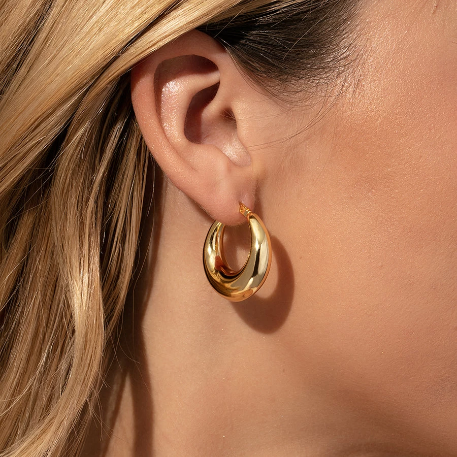 Standout in a sea of gold hoops with our Rare Hoop Earrings. These unique hoops will bring some shape and dimension to your ear stack. Wear them front and center of your stack and style with a simple earring, or be bold and layer with our marbled pink Tube Hoop Earrings.