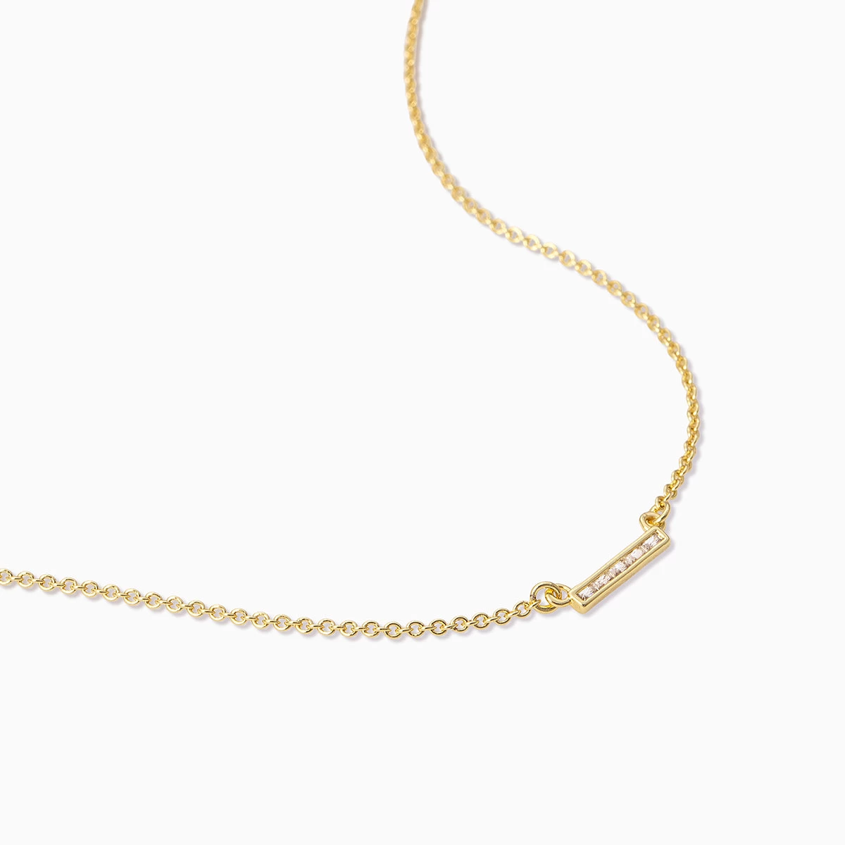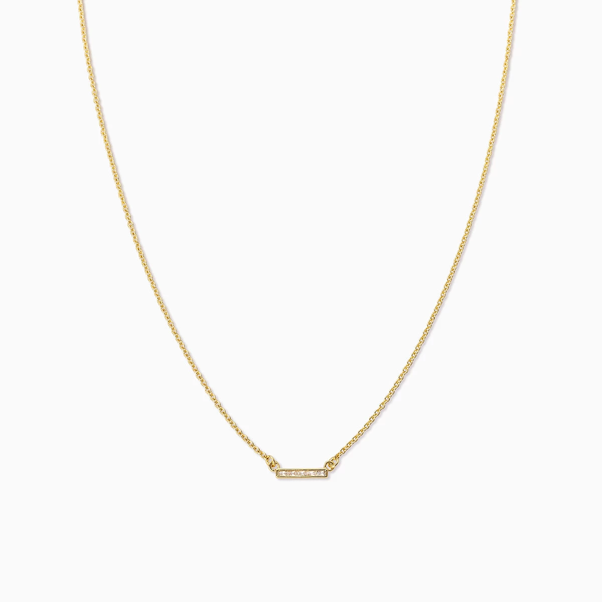 Crafted with a dainty gold chain, a gold bar, and baguette stones, this necklace is going to become your new everyday stacking piece. To get the full look from our stylists, layer the Ray Of Light Necklace with our Peace Sign Pendant Necklace and our Ready to Mingle 2.0 Necklace.
