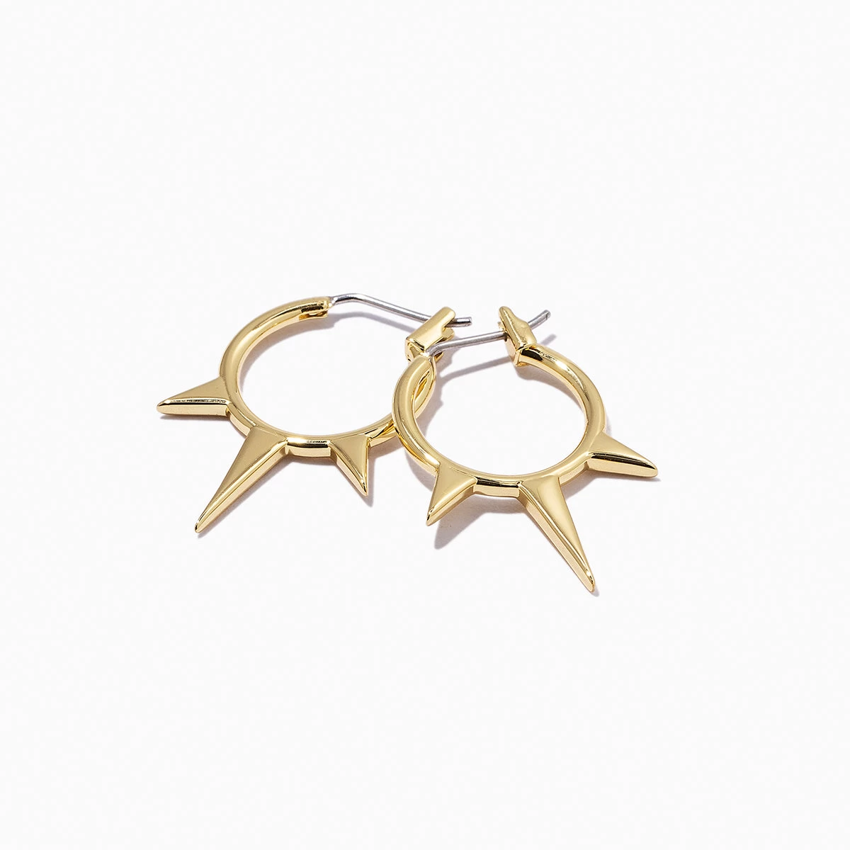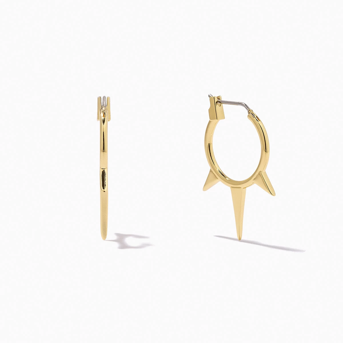 Take a walk on the wild side with our Rebel Hoops. Created with 14k gold plating, these huggie-style earrings are lined with spikes to amplify your edgiest looks.