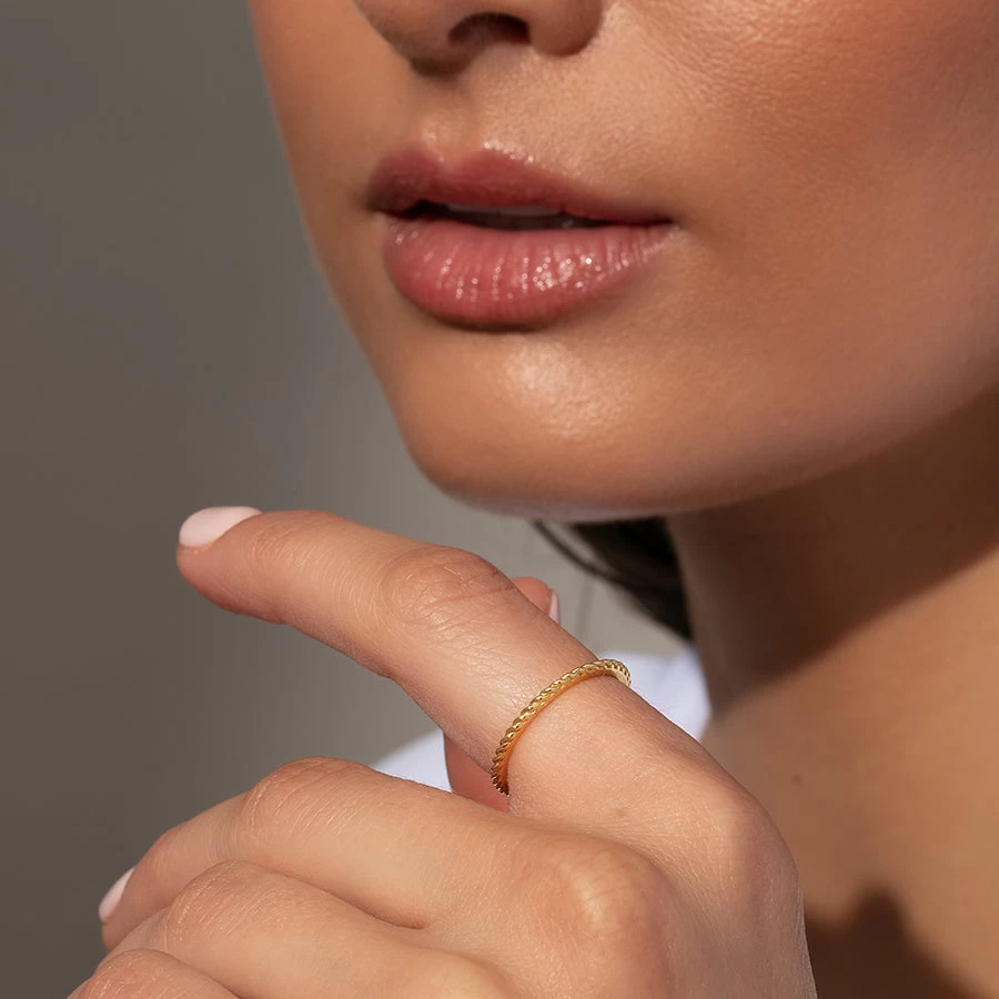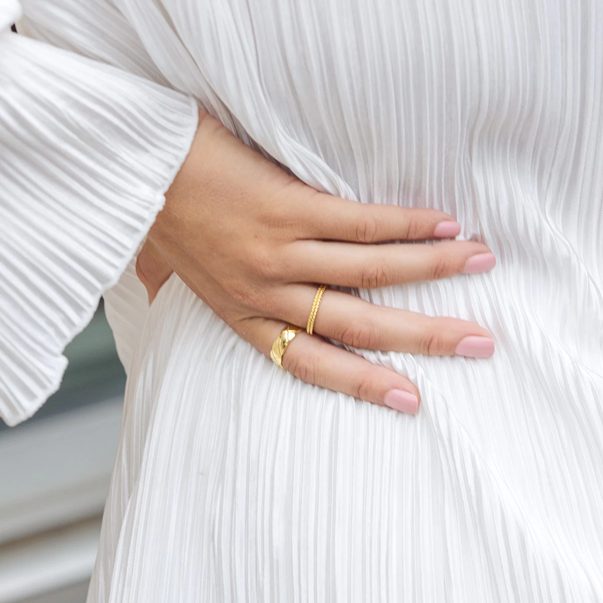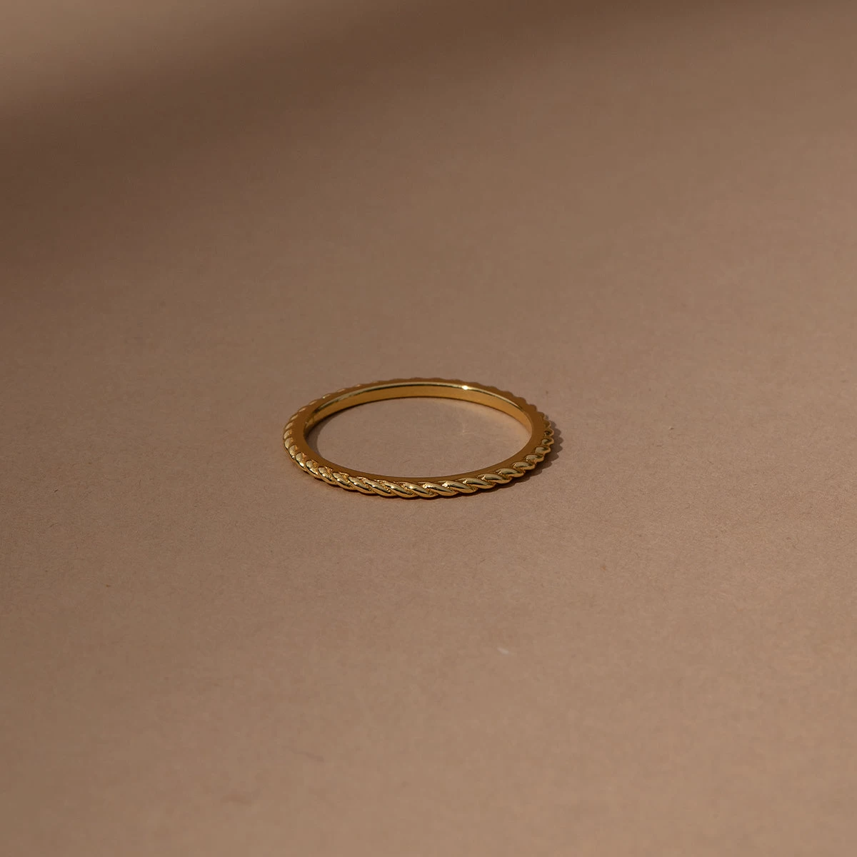 The perfect dainty gold ring everyone needs. Crafted with 18k gold over sterling silver, our Rope Vermeil Ring is the ultimate stacking piece. Layer this rope ring with itself or with any of your other favorite gold rings. For an elegant ring stack, pair this gold band with our Simplistic Vermeil Ring.