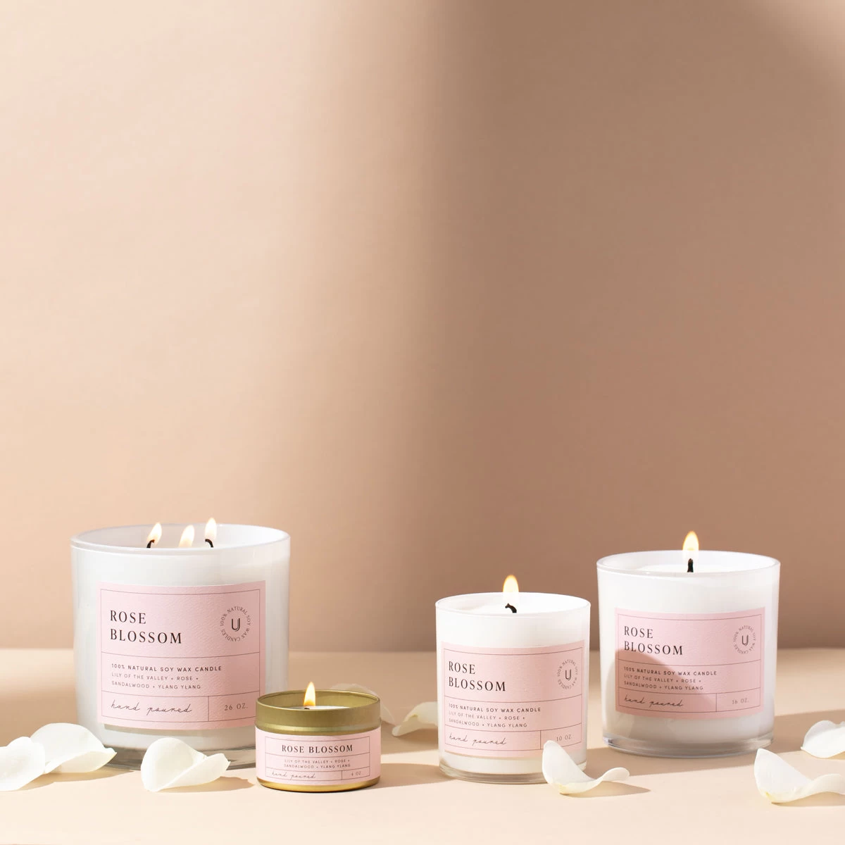 Our Rose Blossom Candle smells like you just spent a day hanging out at the local flower truck. With notes of lily of the valley, rose, sandalwood, and ylang ylang, this is the perfect spring scent your home needs.Â