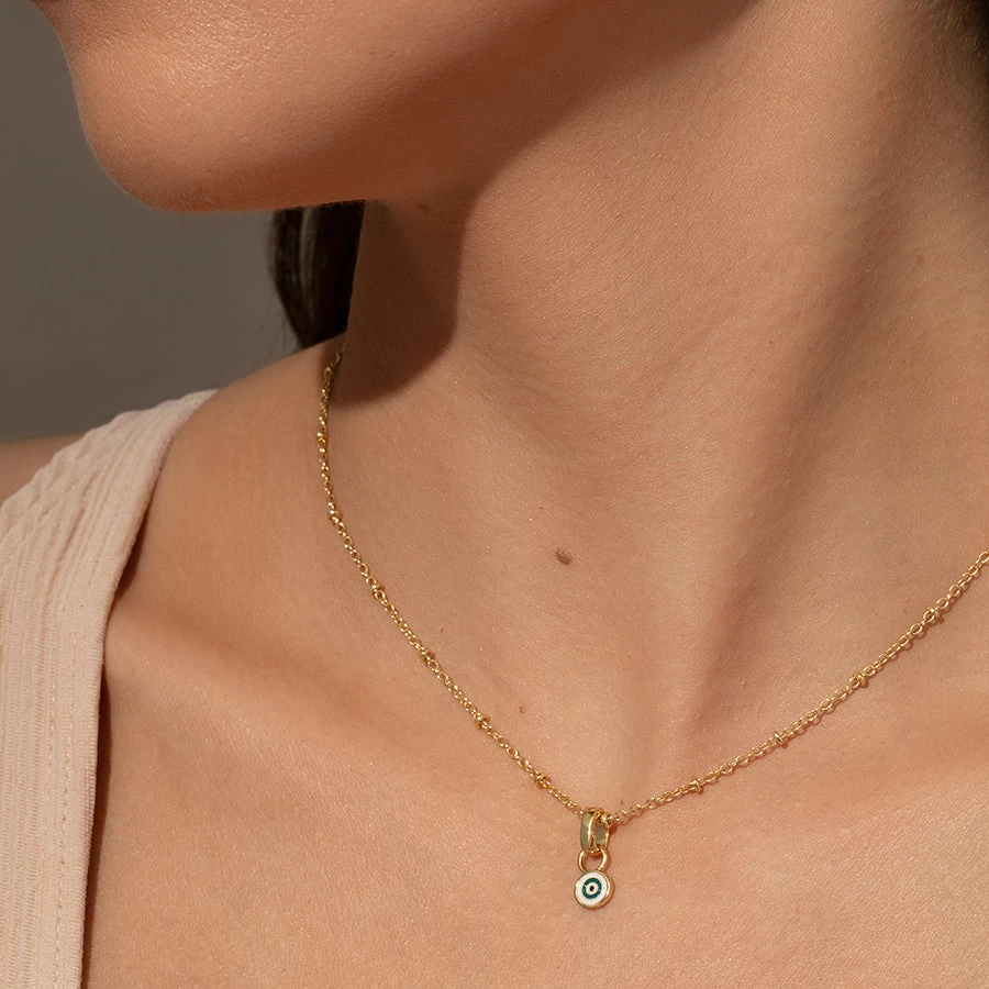 Ward off evil with our Simple Evil Eye Charm. Add it to your charm necklace, bracelet, or earrings for a unique look. For a personalized charm necklace, mix this gold charm with our Letter Charms. To create a full charm jewelry look, shop the full charm bar.Â