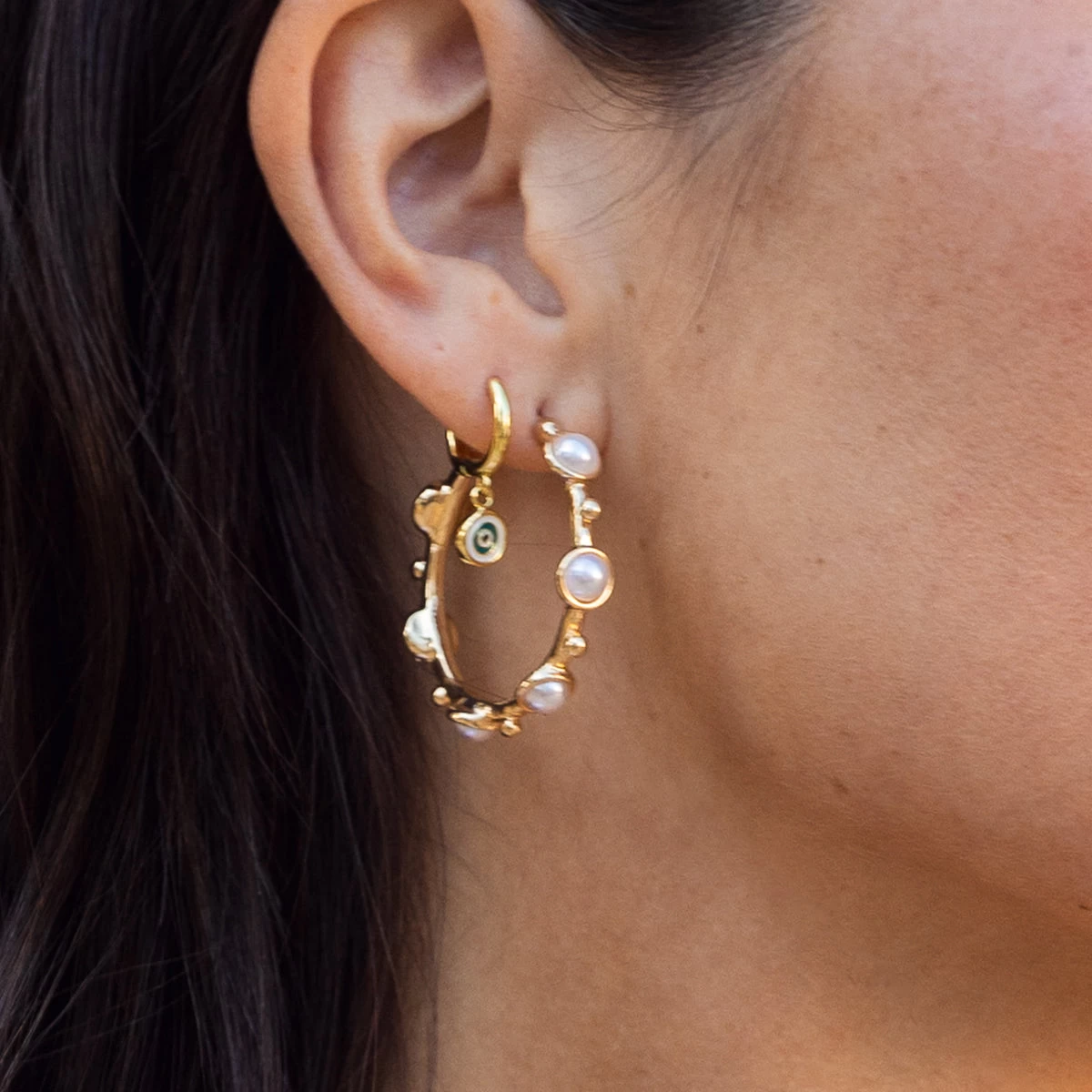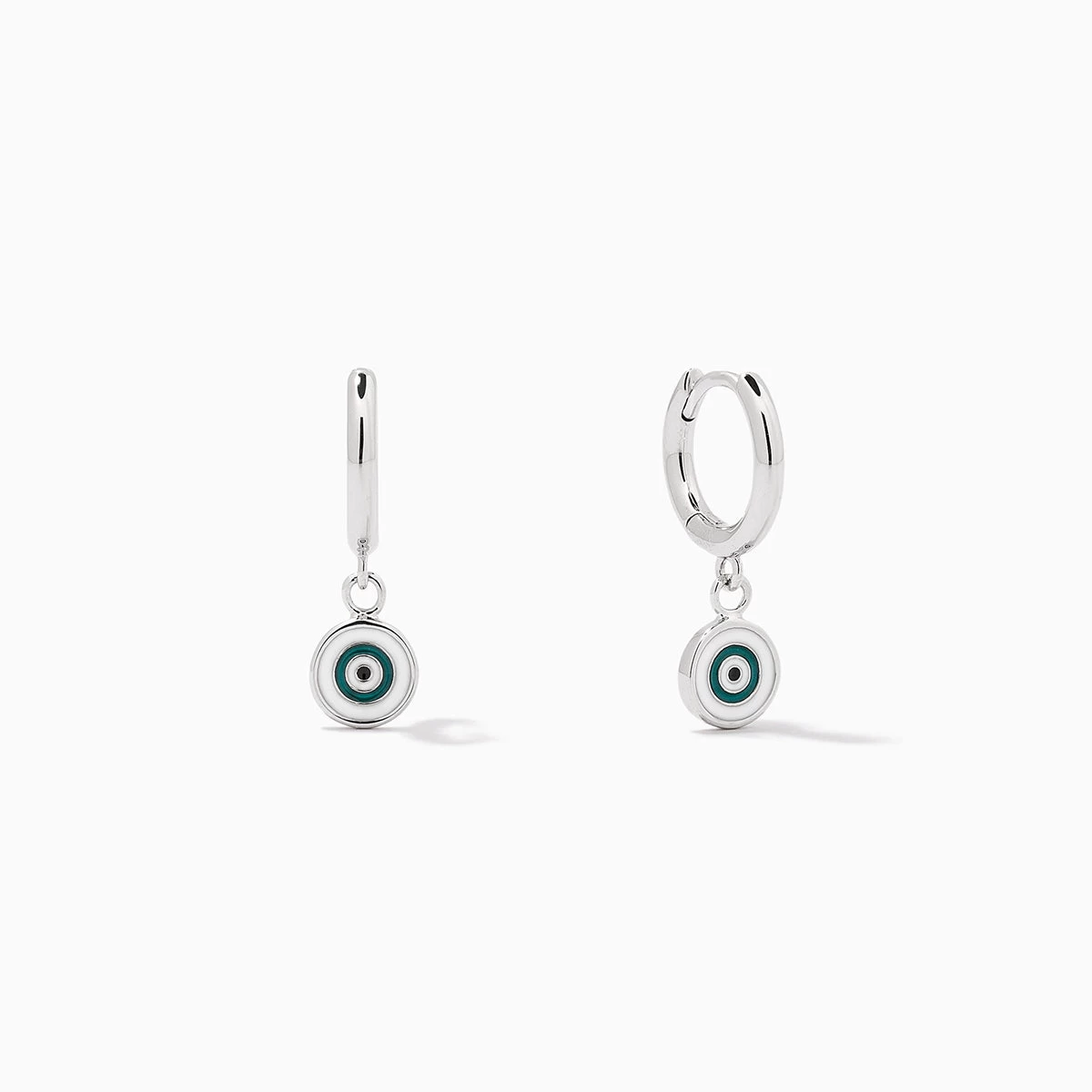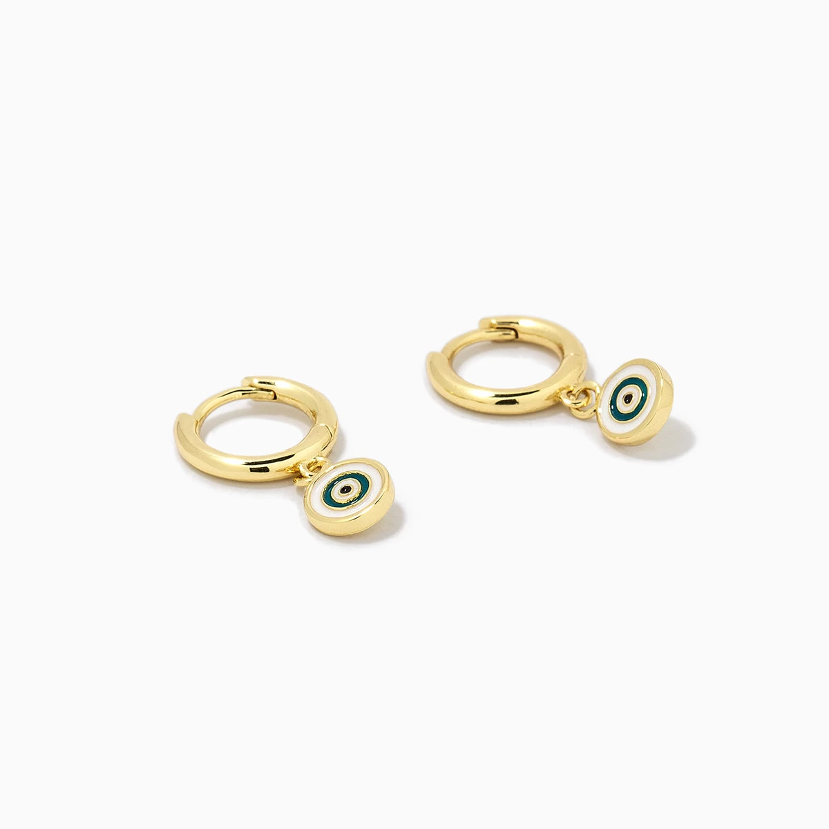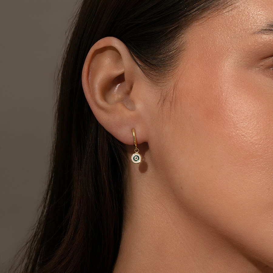 Ward off evil with a new pair of huggie earrings. Our Simple Evil Eye Huggie Earrings are the perfect festival jewelry staple, not to mention they come in both gold and silver. Crafted from a mini gold hoop and an evil eye charm dangle, these earrings are set to be a staple in your stack.