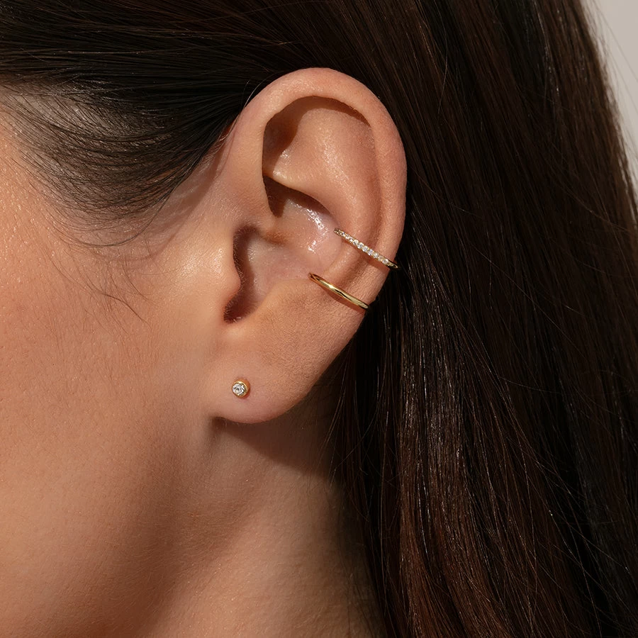 Want some extra gold and shine without another piercing? Our Simple Shine Ear Cuff is just what you need. This double-banded cuff earring has one solid band and one gem studded band for some extra shine. For a full ear stack, pair this gold ear cuff with our Going Solo Huggie Earrings and Medium Girl Boss Earrings.