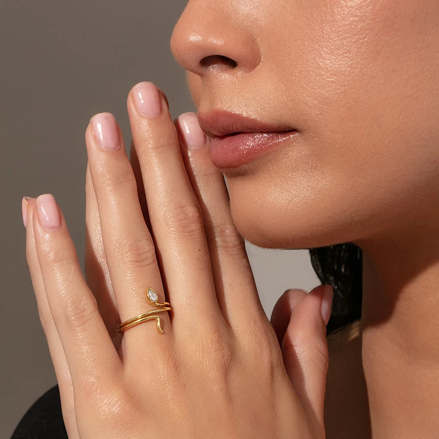 Put all eyes on you every time you wear our Snake Ring. This unique spiral ring is sure to make a statement and leave people talking. To really leave your mark, be sure to pair this gold statement ring with our Bold Dome Ring. Want more snake jewelry styles? Shop our In The Garden Collection.