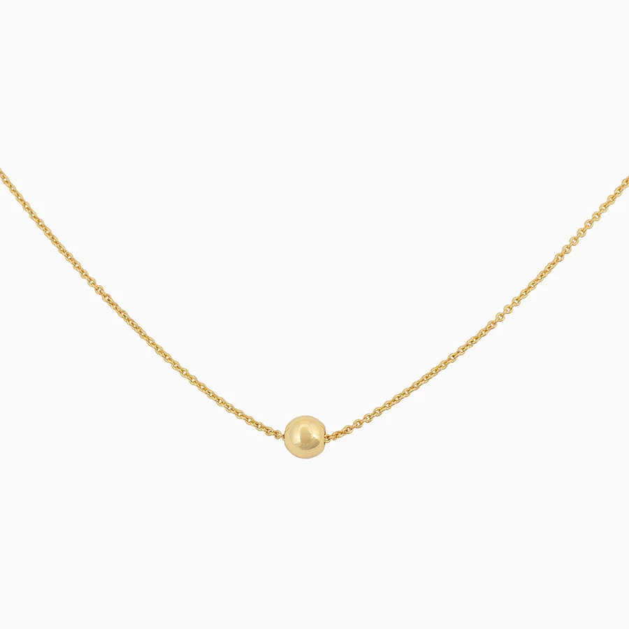 Our Solo Necklace is simplicity at its finest. This small, simple necklace features a single ball bead at the center of a classic gold chain. This dainty gold necklace is the perfect pair to our Fine Line Necklace, but of course also perfect solo.