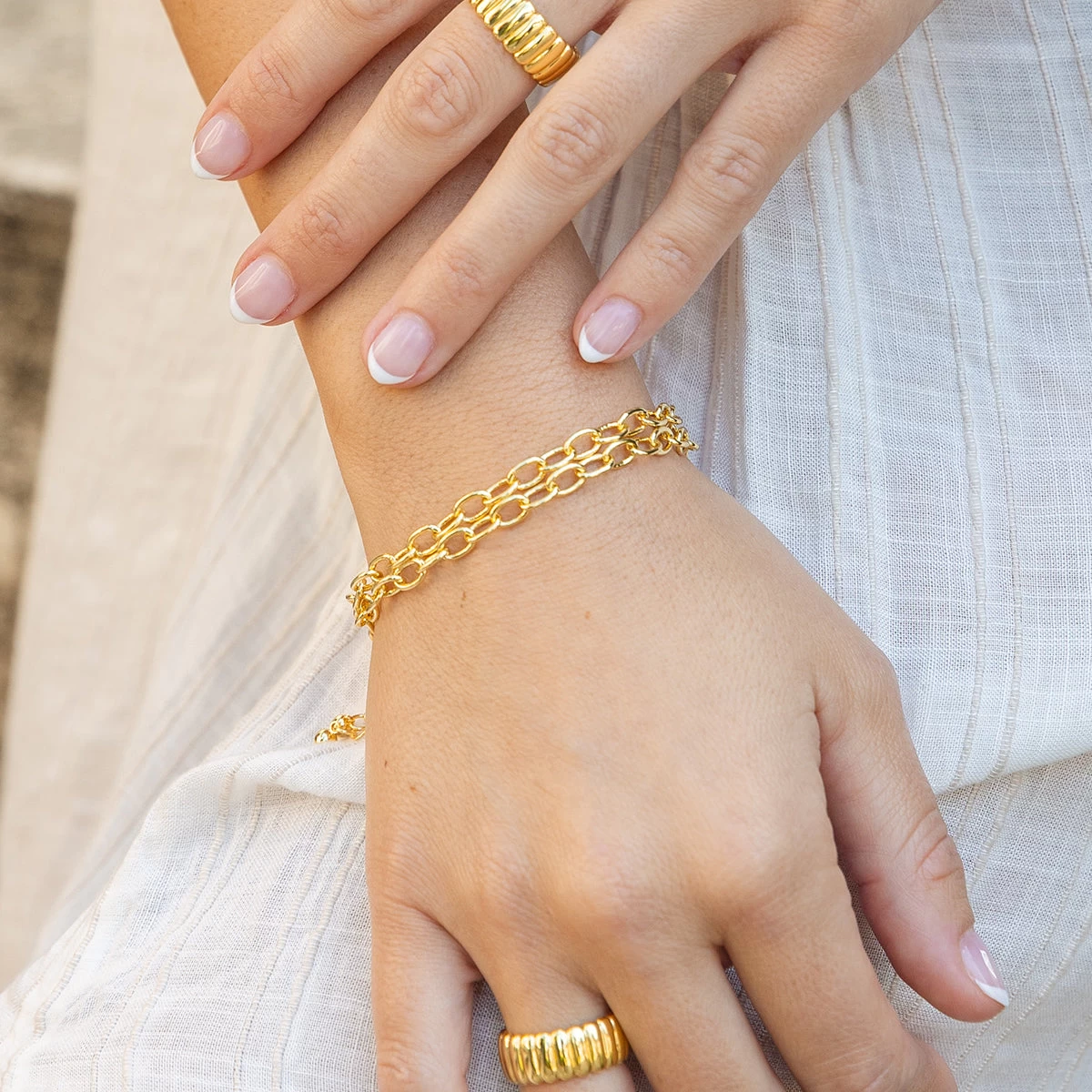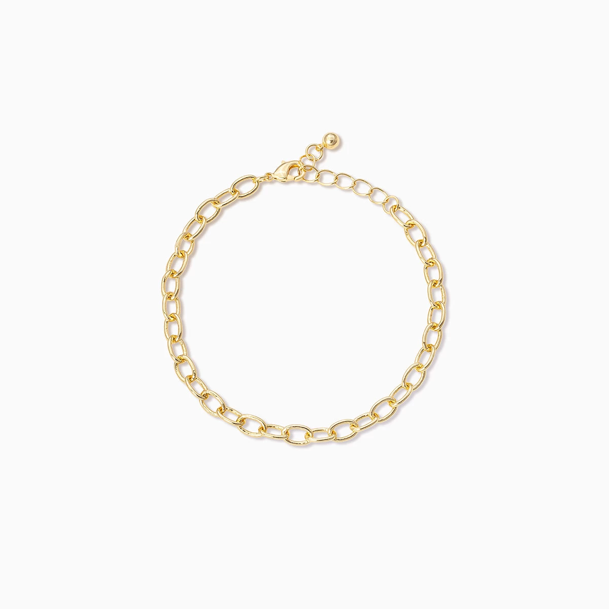 There’s no need to over complicate it, our Standard Cable Chain Bracelet is an essential. This everyday gold chain bracelet will put the final touches on any look you’re going for. To recreate an arm candy look our stylists love, pair this gold bracelet with our Staple Paperclip Chain Bracelet, Parthenon Ribbed Ring, and Everyday Band Ring.