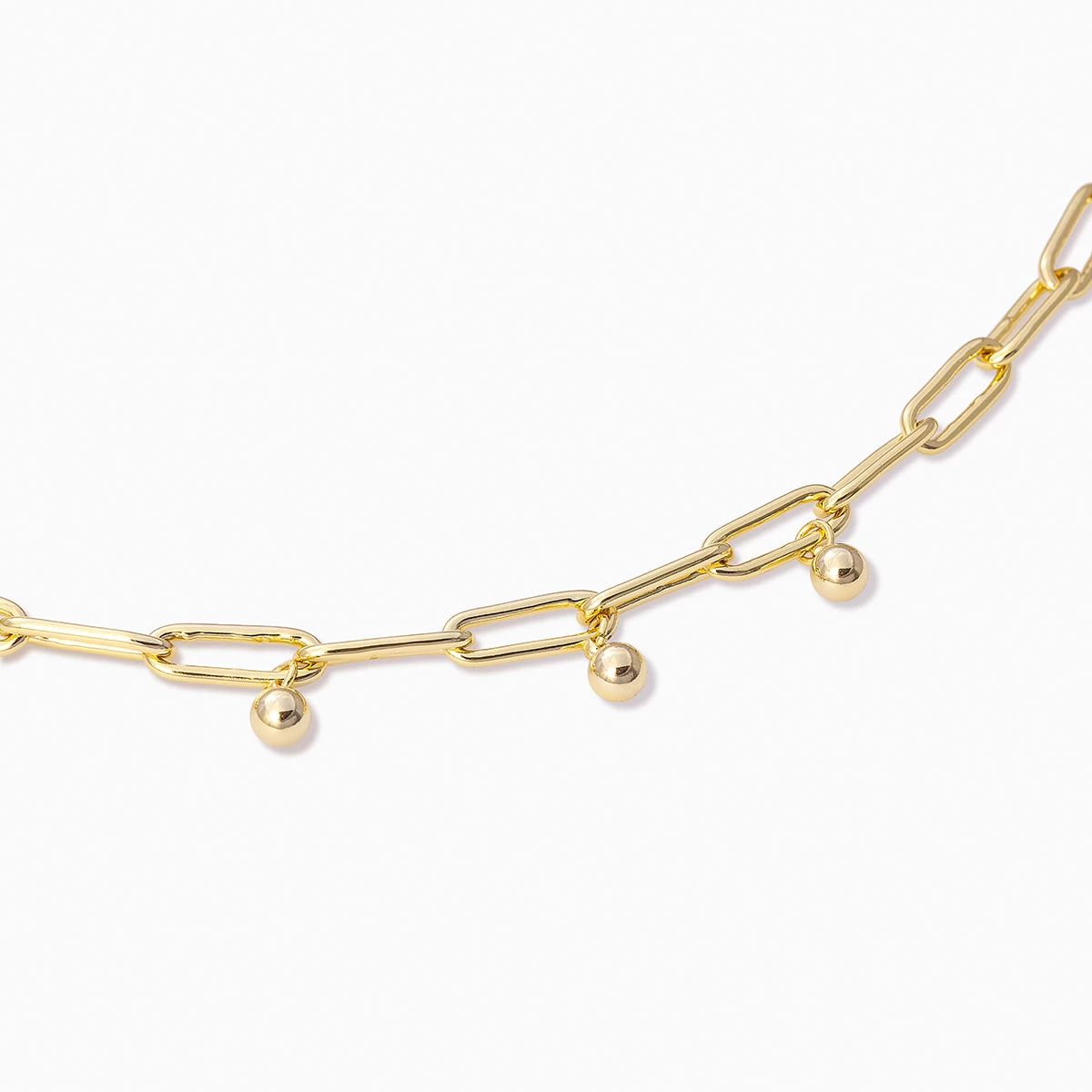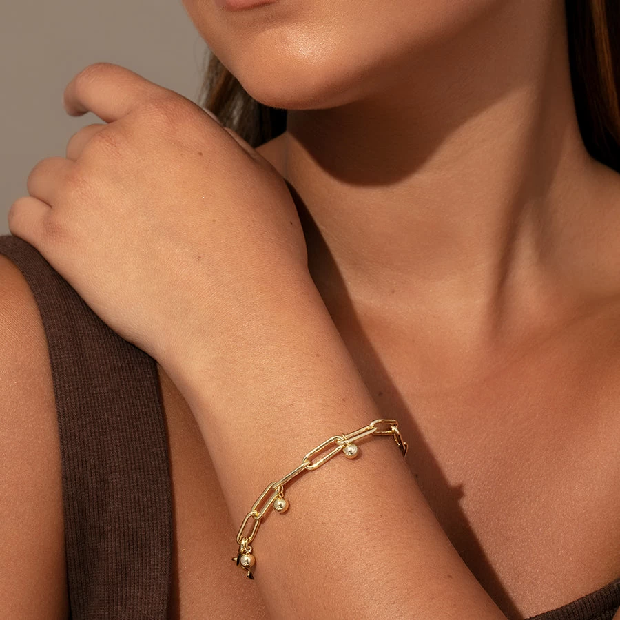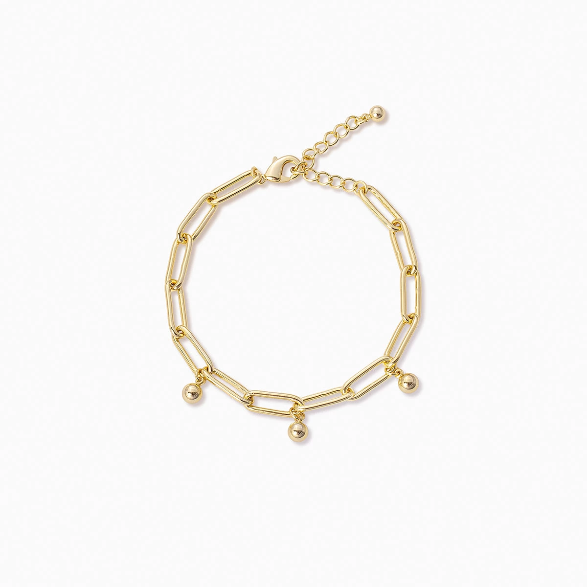 Take your everyday arm candy to the next level with our Step Up Chain Bracelet. Featuring a paperclip chain and three ball beads, this is the perfect everyday bracelet.Â