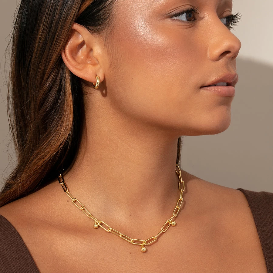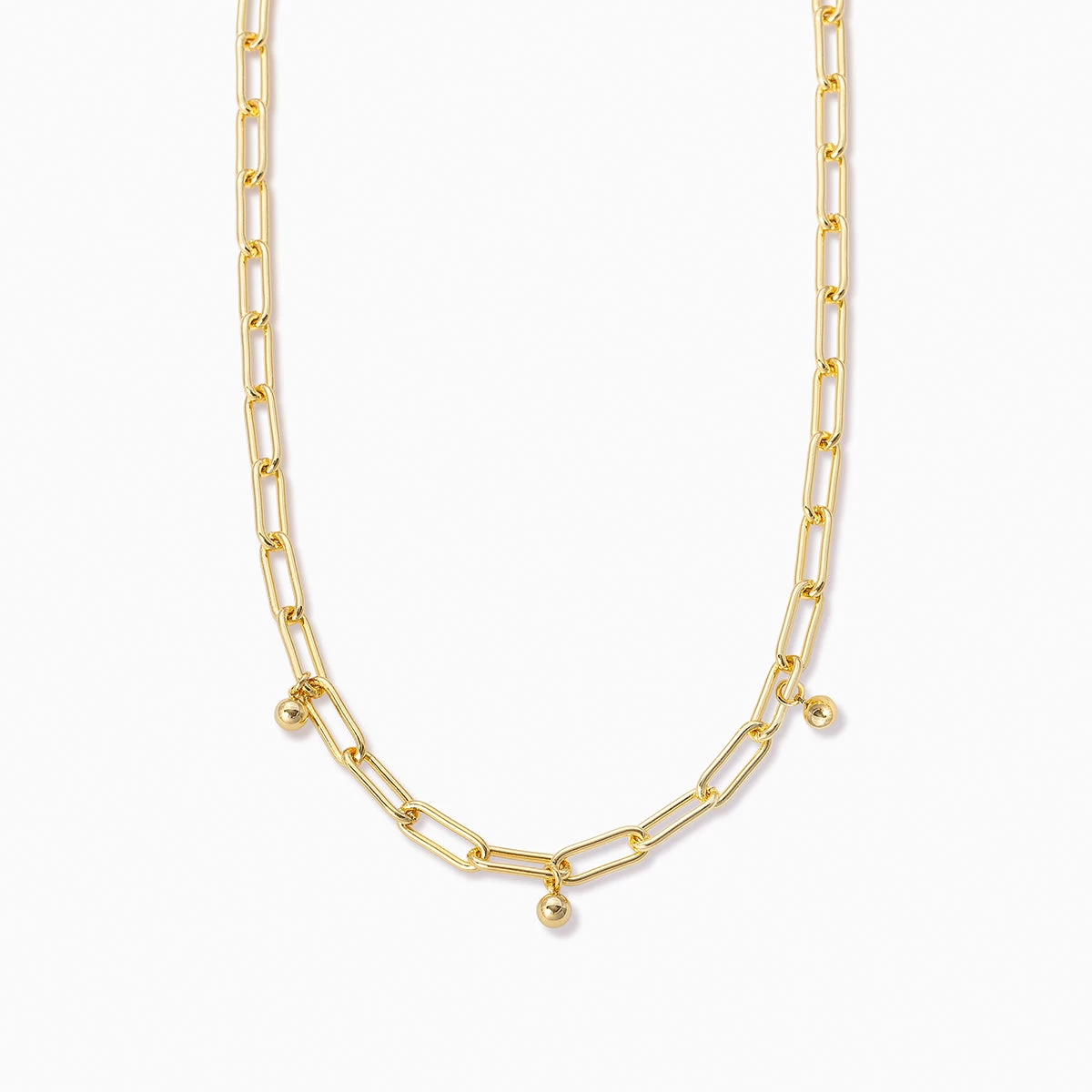 We brought together a paperclip chain and three ball beads to create the Step Up Chain Necklace. Swap out your everyday paperclip chain necklace for this newer addition, or add it to your stack so you can wear all of your favorites together.Â