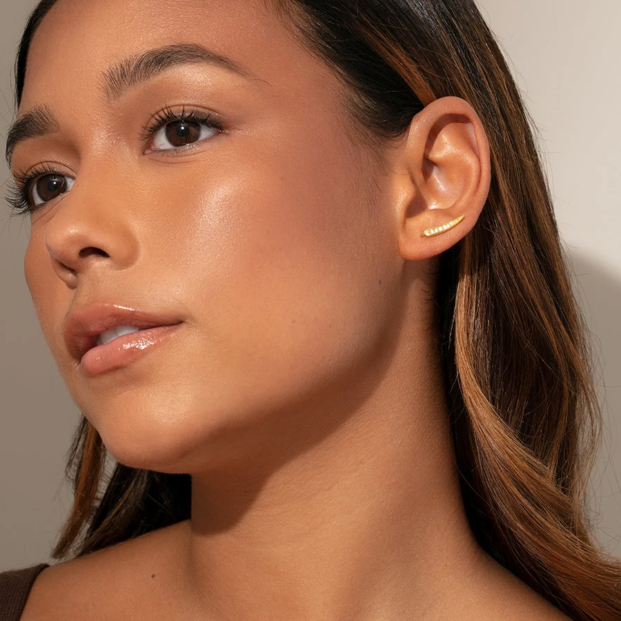 Make your earring stack standout with the Supreme Ear Climber. The unique shape and pavé detailing makes this gold earring one you’ll want to wear forever.