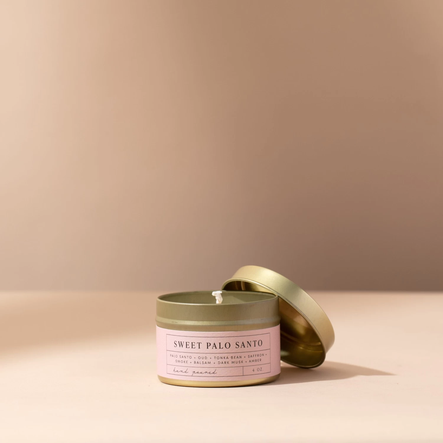 Sweet Palo Santo blends palo santo, tonka bean, and dark musk for a sweet and earthy fragrance. We recommend burning while keeping cozy on a quiet, dark evening.