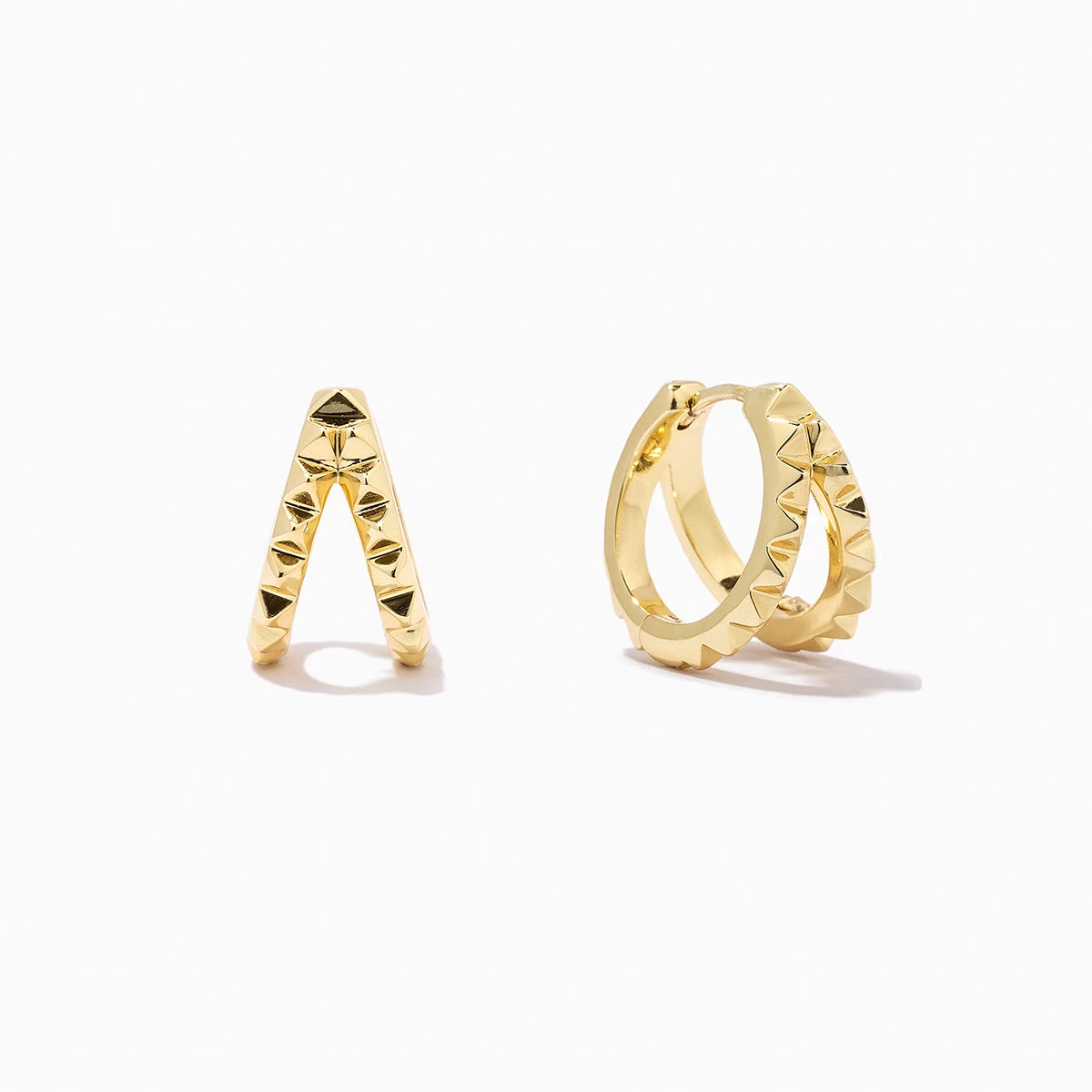 These gold huggies will bring some edge to your ear stack with their double hoop studded details.