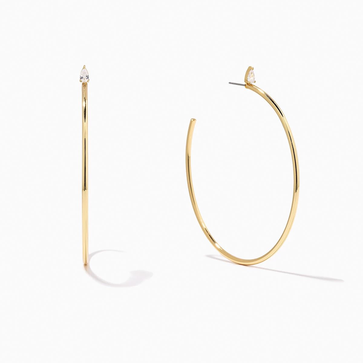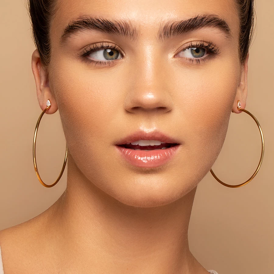 Looking for the perfect statement hoop earring? Look no further than our Touch of Fem Hoops. With a thin gold band and a stud at the top, these hoop and stud earrings are sure to turn heads.